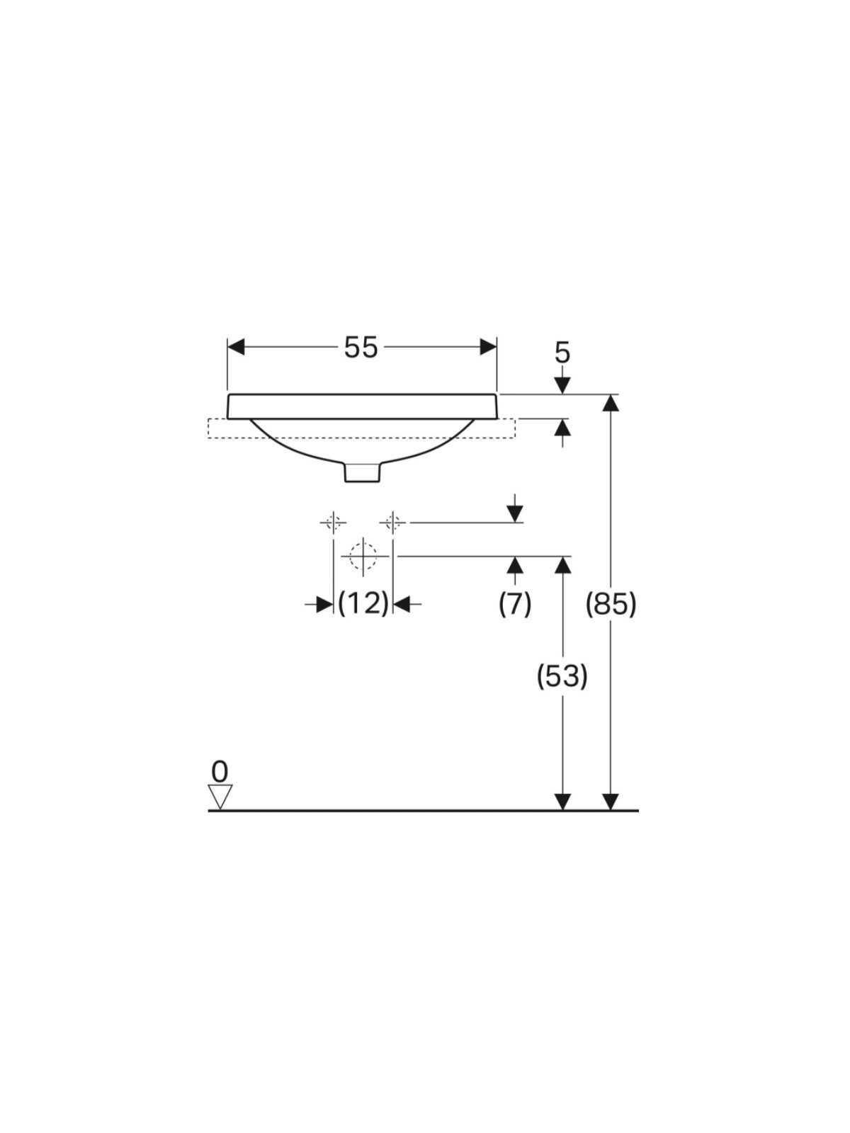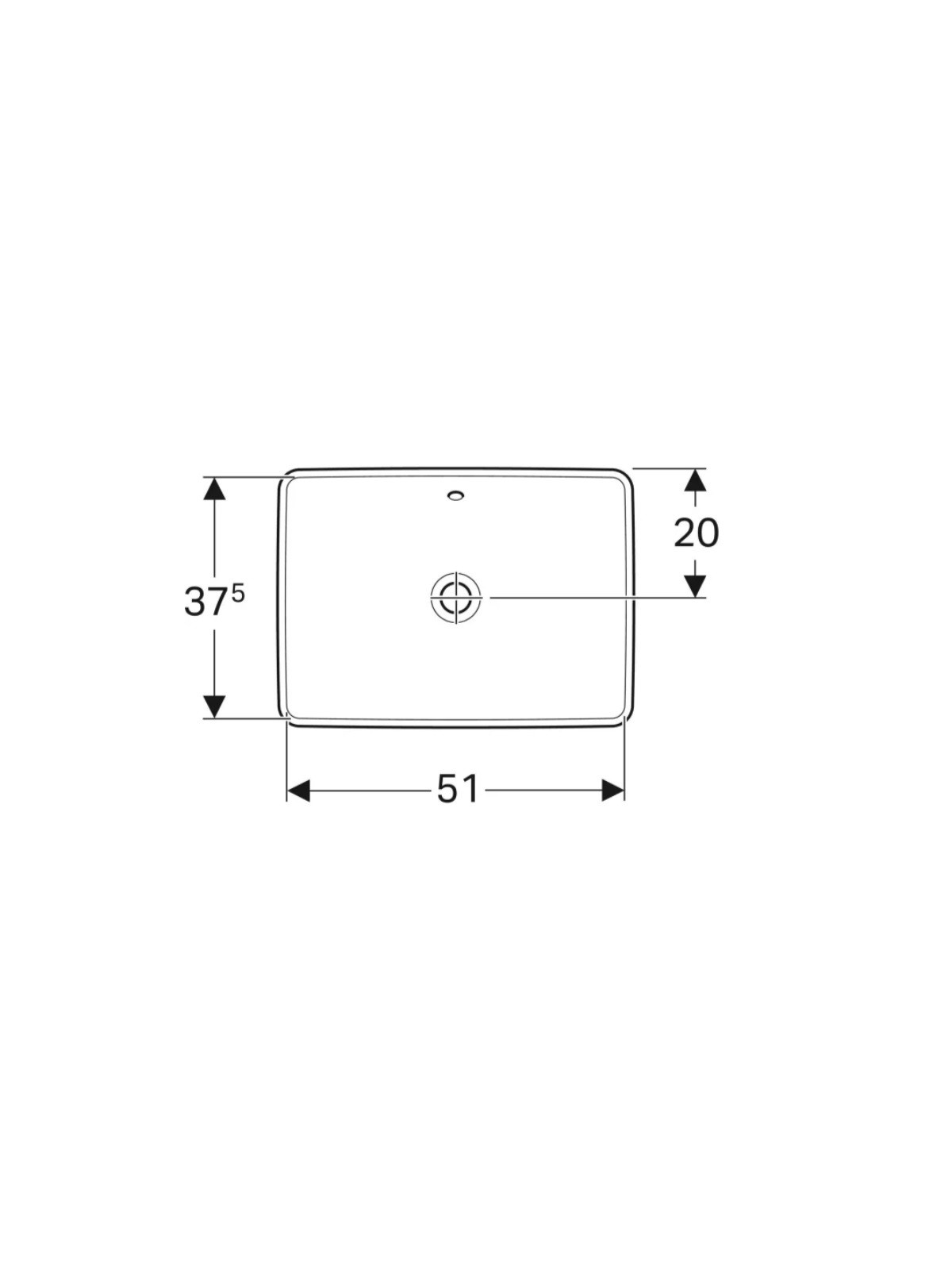 500.737.01.2 VariForm Умивальник прямокутний, 55х40см, що вбуд.в стільницю, без отв. під змішувач, з переливом, глазурований знизу, білий глянець (1 сорт)