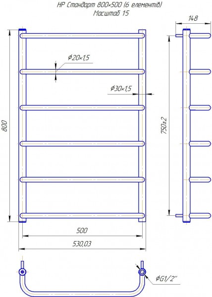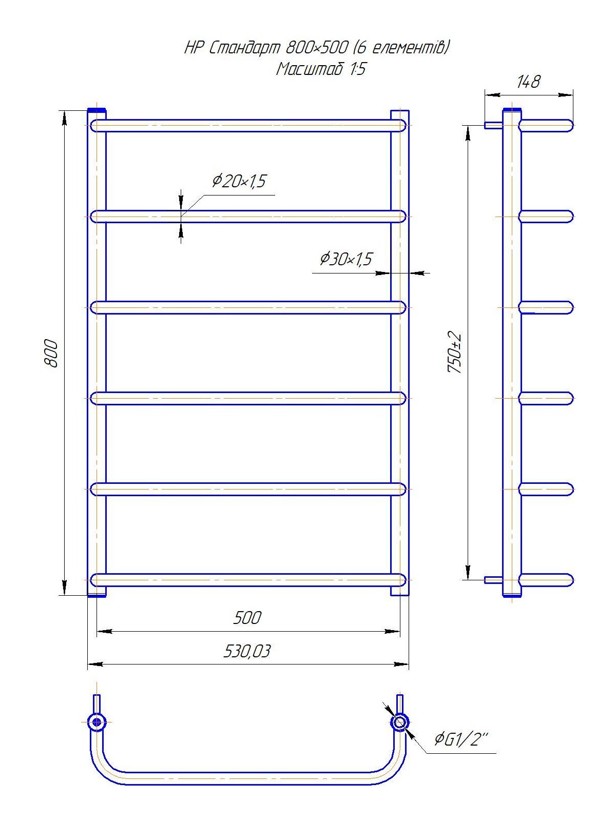 Рушникосушарка "Маріо" Стандарт НР 800х530/400.
