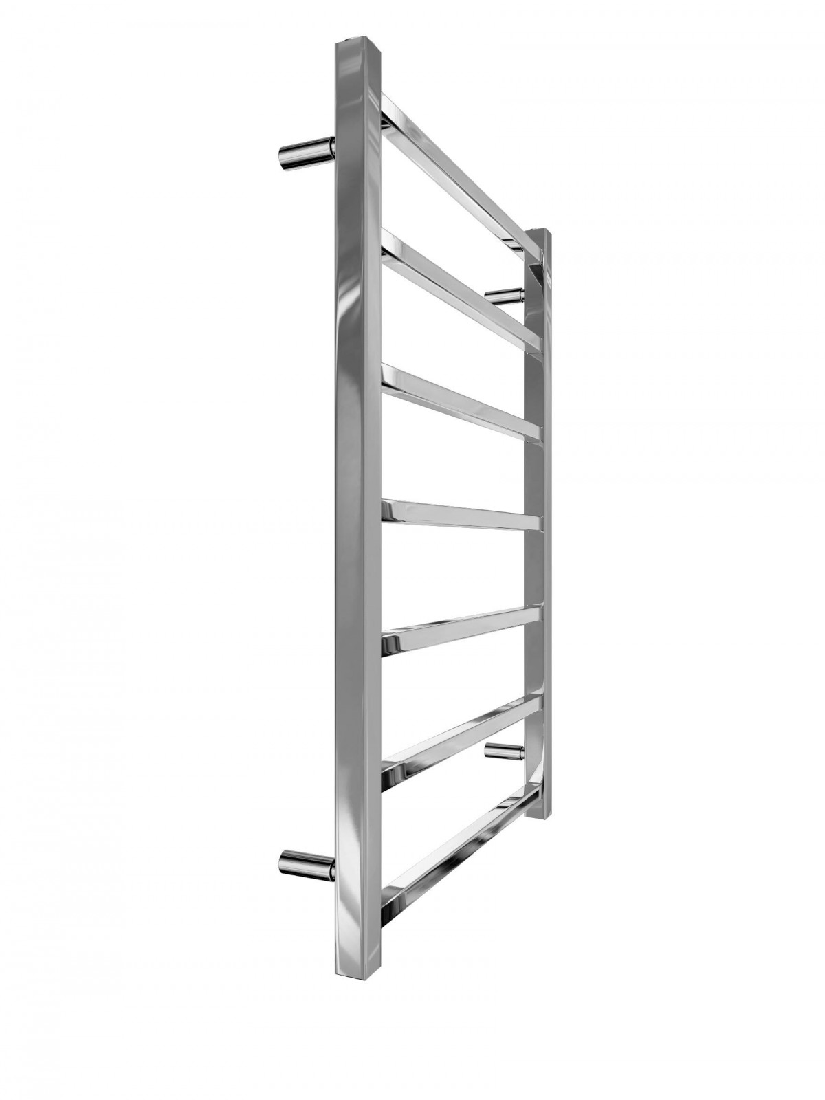 Рушникосушарка INOX Токіо 770х530/500. Розміри: висота - 770 мм, ширина - 530 мм, глибина 80 мм, міжцентрова відстань для підключення - 500 мм, діаметр підключення G1/2''. Варіанти підключення: нижнє, діагональне та бічне. Кількість ребер - 7. Виготовлена з полірованої нержавіючої сталі без хромування. Для всесезонної роботи водяну модель можна переобладнати на комбіновану, встановивши ТЕН, рекомендована потужність 300 Вт. Сумісні аксесуари: поворотні полиці та навісні гачки для збільшення функціональності. Рекомендовано підключати рушникосушарку за допомогою кранів Маріо. Гарантія - 50 років в закритій системі опалення, 5 років у централізованій.