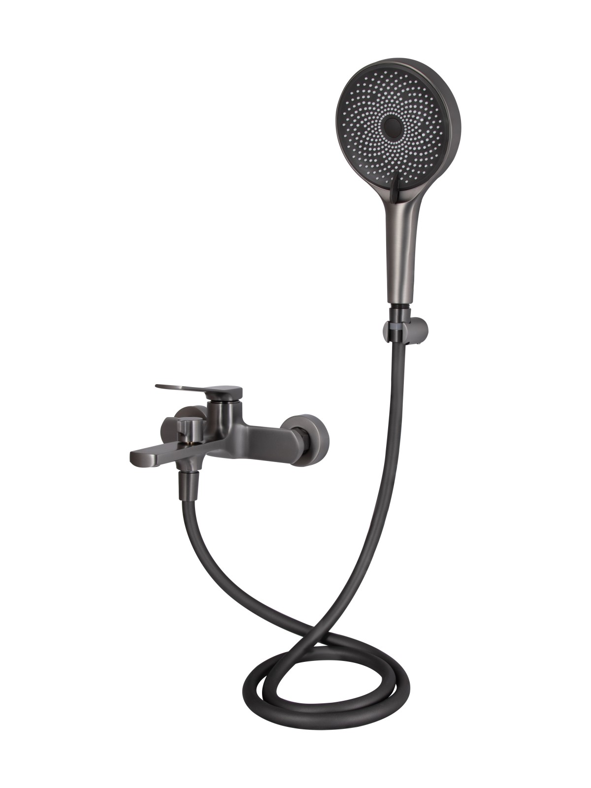 Комплектація: Змішувач, лійка для ручного душу, душовий шланг, кронштейн для ручного душу, кріплення.