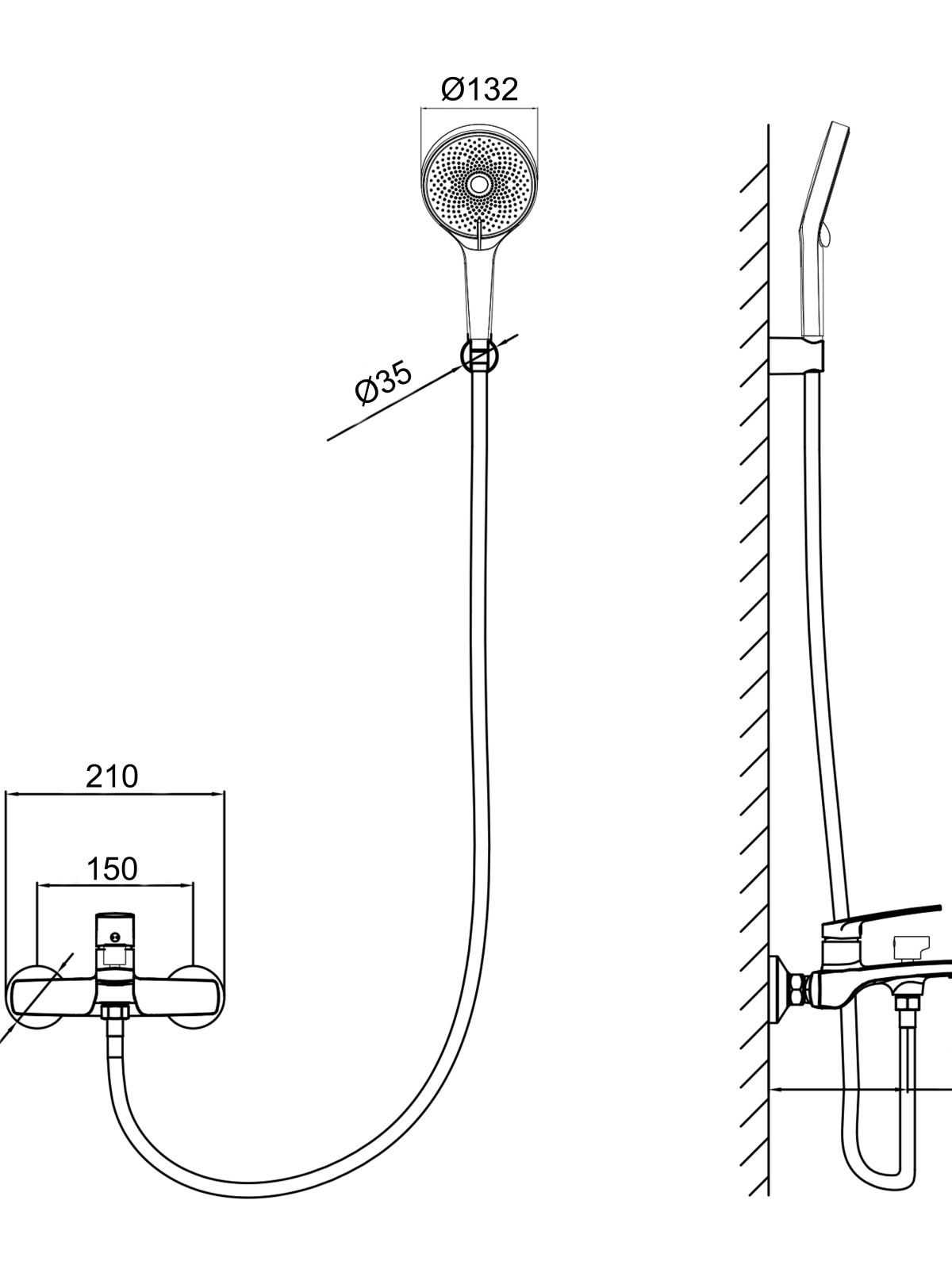 Комплектація: Змішувач, лійка для ручного душу, душовий шланг, кронштейн для ручного душу, кріплення.