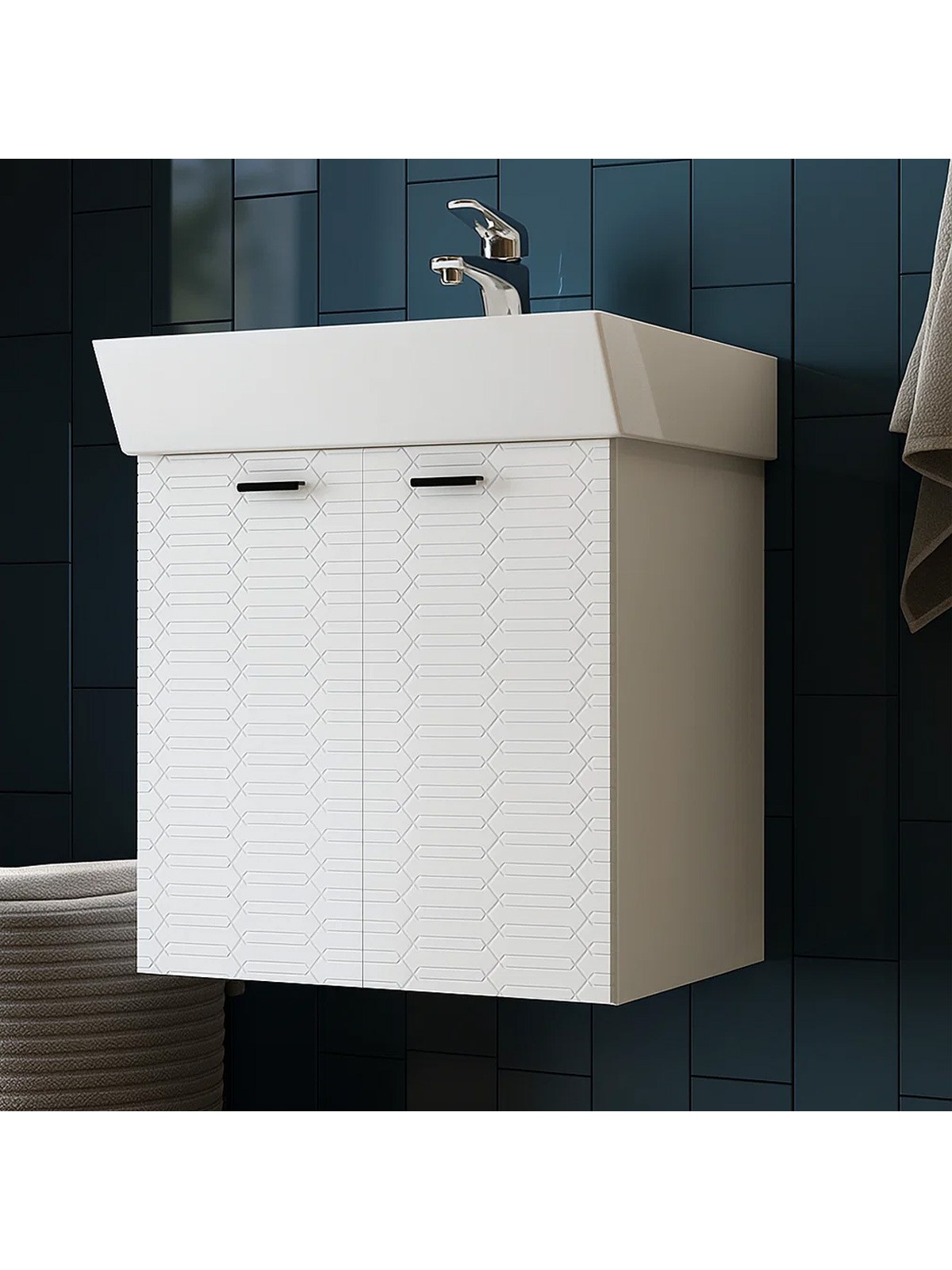 484050W Flow Тумба 50 з умивальником та ручками, білий матовий (1 сорт)