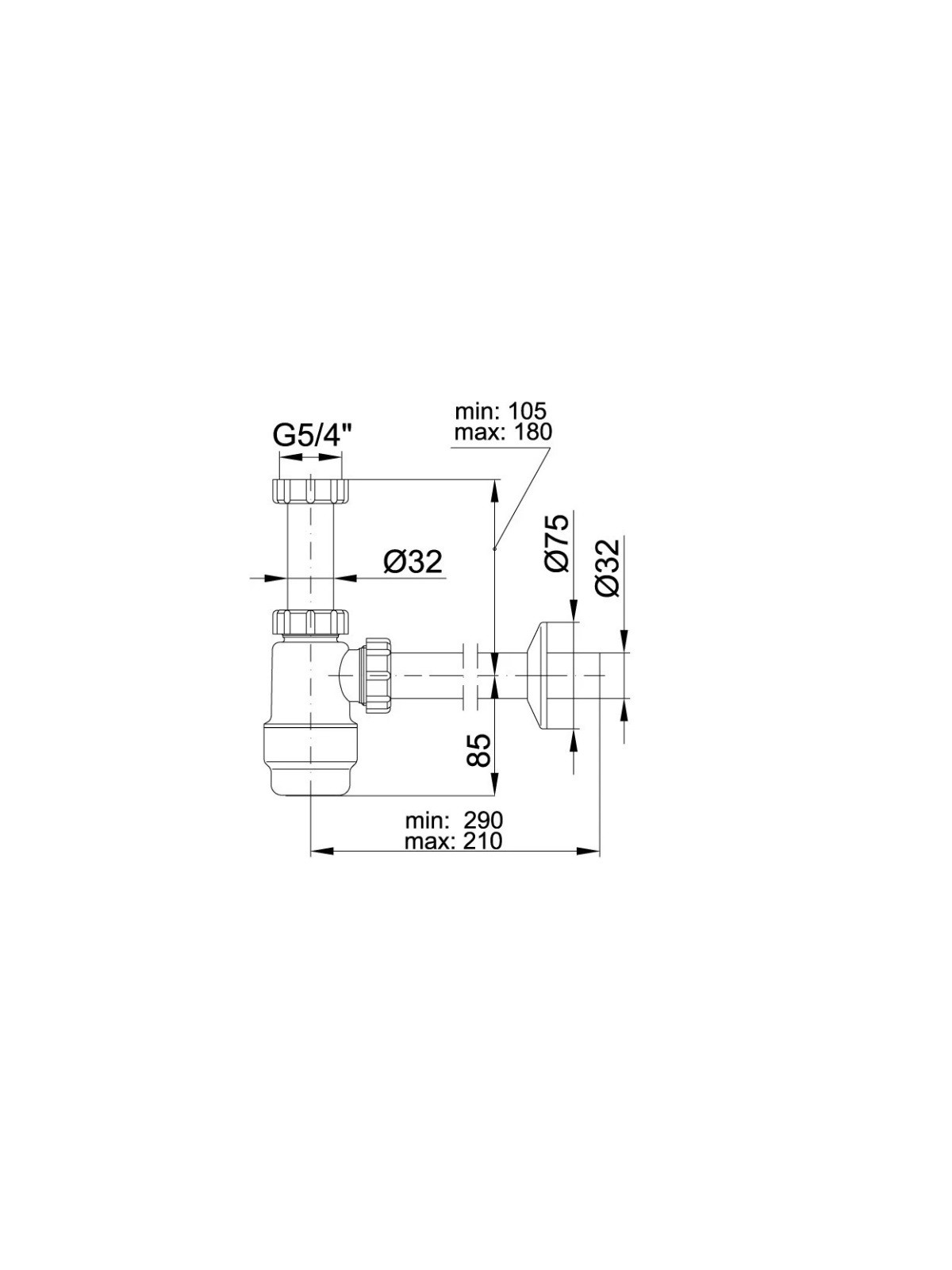 STY-533-2 сифон для раковини, без водозливу, із патрубком відедення 32 мм (1 сорт)