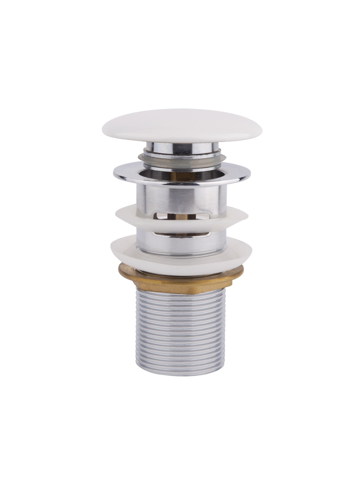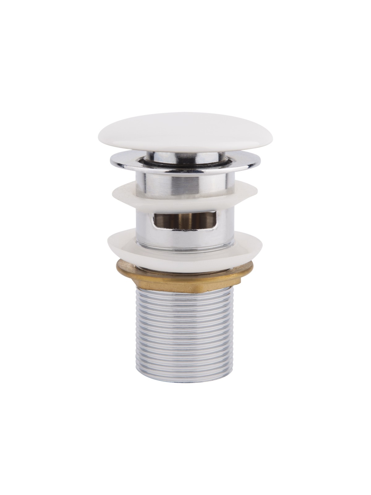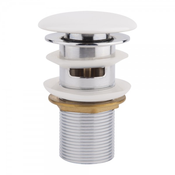 Донний клапан Qtap WHI F0081 (арт. QT066F0081W) виготовлений із латунної фурнітури хромованого кольору та білої керамічної кришки з приємним блиском, яка чудово виглядатиме на дні раковини з таким же покриттям. Виріб дозволяє перекрити зливний отвір у разі потреби й використовувати раковину як таз, а наявність переливу захистить від потопу, якщо ви ненадовго відволіклися під час набирання води. Клапан швидко монтується й легко керується. З’єднання універсальне зі стандартним кроком різьби.