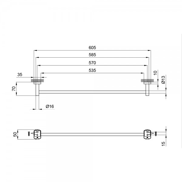 Габаритні розміри виробу (ШхГхВ), мм: 605х70х50