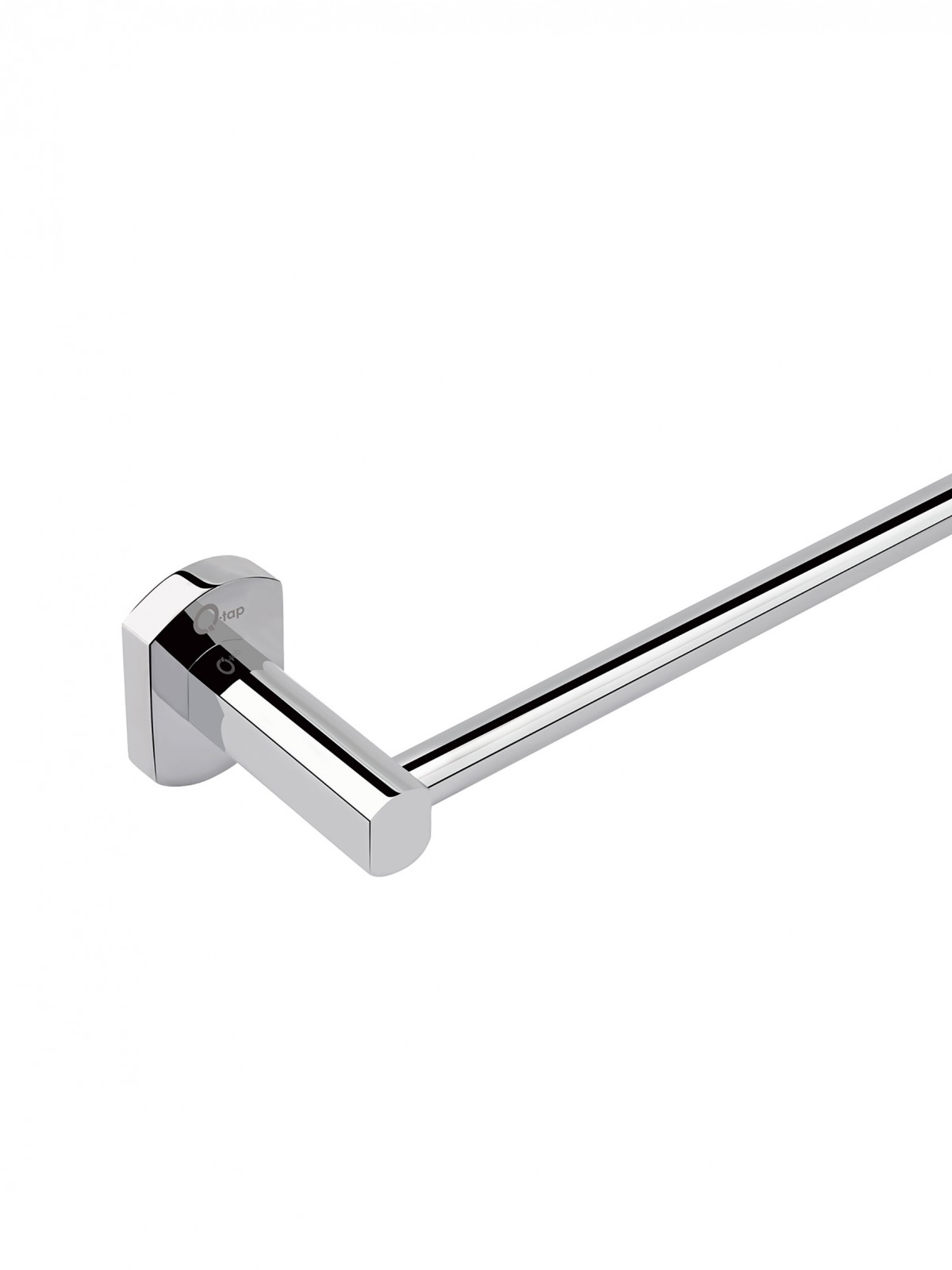 Тримач для рушників Qtap Liberty CRM 1124 виконаний з латуні з хромованою глянсовою поверхнею, яка легко миється та не піддається корозії. Тримач складається з кріплення й стержня довжиною 610 мм, що дозволяє розмістити відразу два рушники або один банний. Прихований монтаж не порушує дизайну ванної кімнати й не псує обробку. На тримач нанесено фірмовий логотип виробника.