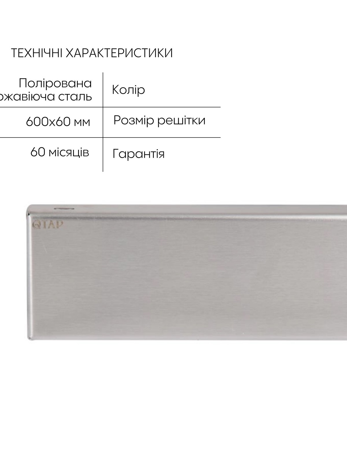 Лінійний трап Qtap Scorpio Tile600 допоможе облаштувати сучасну душову зону без застосування душового піддону на рівні зі підлогою. Корпус трапу виконаний з нержавіючої сталі AISI 304. Дана модель виконана з декоративною накладкою, яка при необхідності перетворюється на лоток під укладання керамічної плитки. Завдяки сухому затвору неприємний запах не проникатиме у приміщення з каналізації.