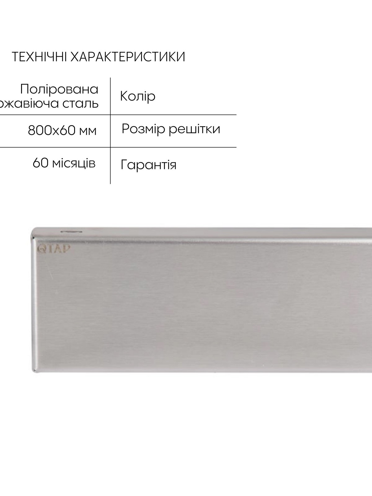 Лінійний трап Qtap Scorpio Tile800 допоможе облаштувати сучасну душову зону без застосування душового піддону на рівні зі підлогою. Корпус трапу виконаний з нержавіючої сталі AISI 304. Дана модель виконана з декоративною накладкою, яка при необхідності перетворюється на лоток під укладання керамічної плитки. Завдяки сухому затвору неприємний запах не проникатиме у приміщення з каналізації.