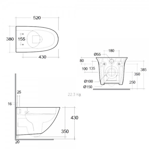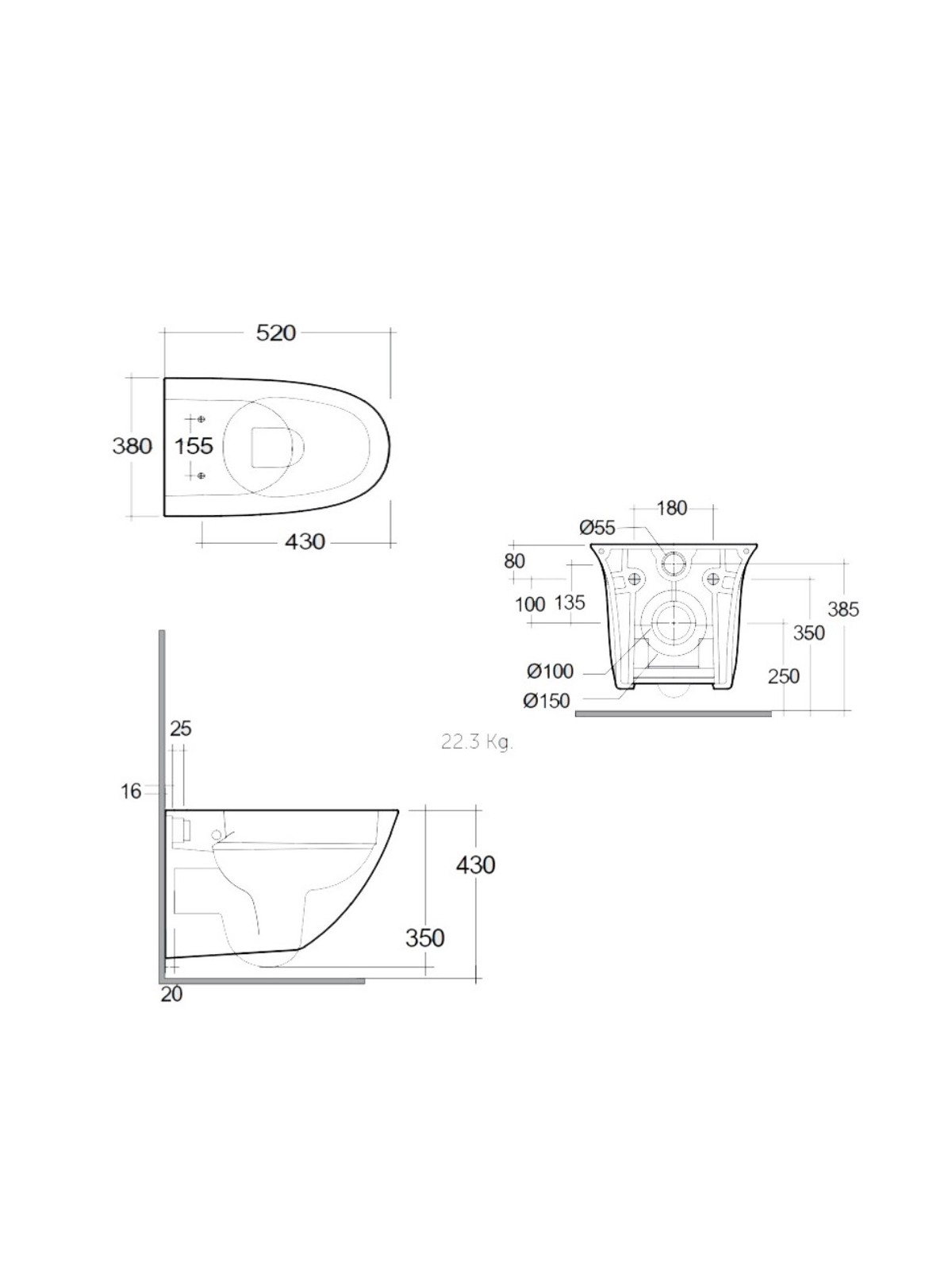 SENWC1446AWHA+SENSC3901WH RAK SENSATION Унітаз підвісний безобідковий з кришкою, білий 52см (1 сорт)