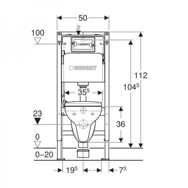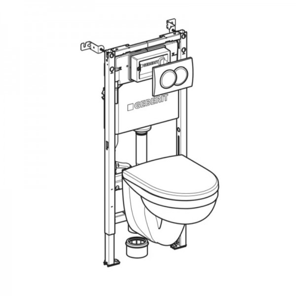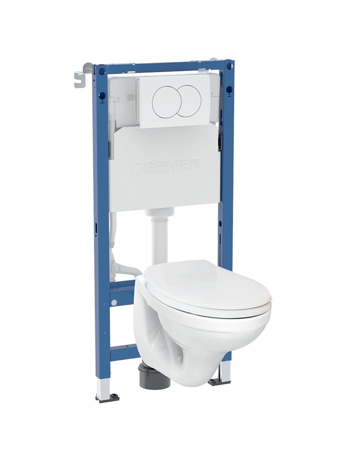 118.315.11.2 Комплект Geberit Duofix PRO 20, інсталяція для підв.унітазу Delta 12см із кріпленням до стіни, підвісний унітаз Idol із сидінням Duroplast, змивна клавіша Delta01: Білий глянець (1 сорт)