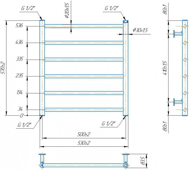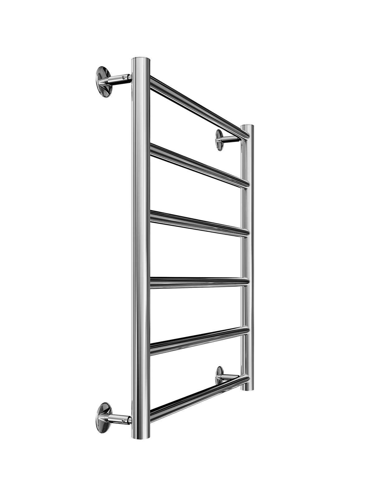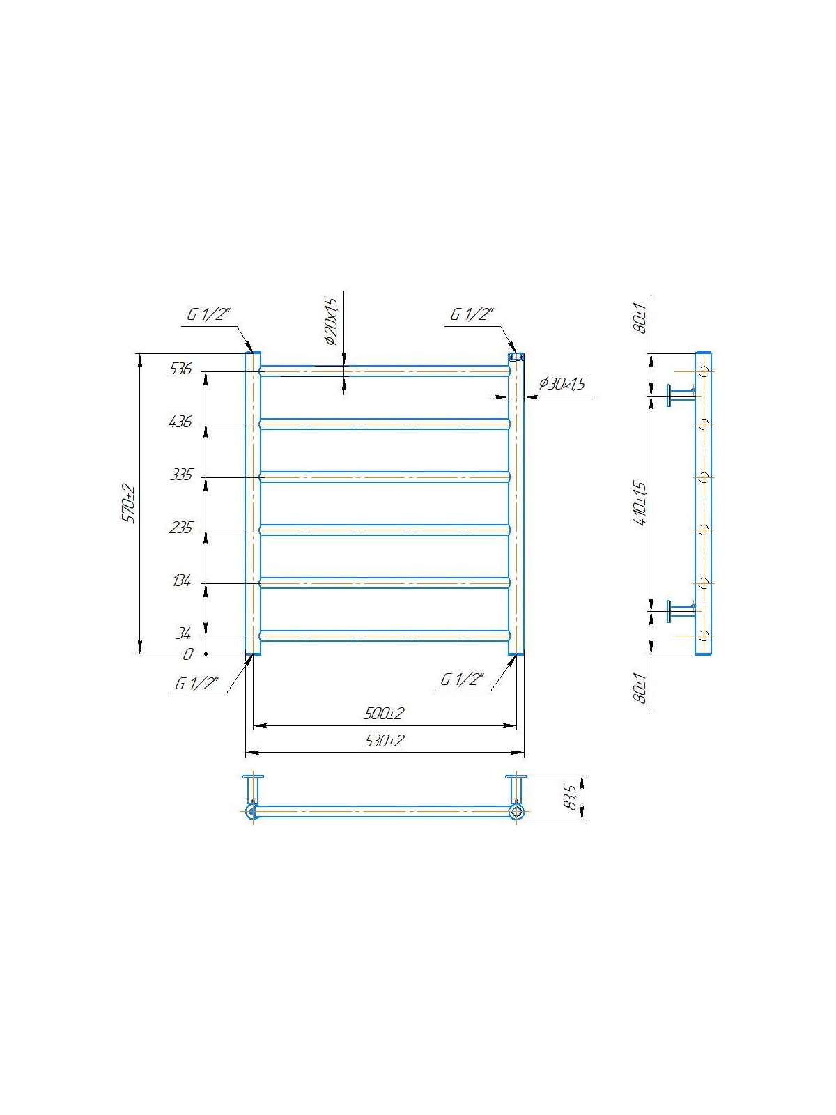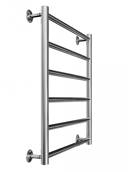 Рушникосушарка INOX Флет 570х530/500. Розміри: висота - 570 мм, ширина - 530 мм, глибина 90 мм, міжцентрова відстань для підключення - 500 мм, діаметр підключення G1/2''. Варіанти підключення: нижнє, діагональне та бічне. Кількість ребер - 6. Виготовлена з полірованої нержавіючої сталі без хромування. Для всесезонної роботи водяну модель можна переобладнати на комбіновану, встановивши ТЕН, рекомендована потужність 120 Вт. Сумісні аксесуари: поворотні полиці та навісні гачки для збільшення функціональності. Рекомендовано підключати рушникосушарку за допомогою кранів Маріо. Гарантія - 50 років в закритій системі опалення, 5 років у централізованій.