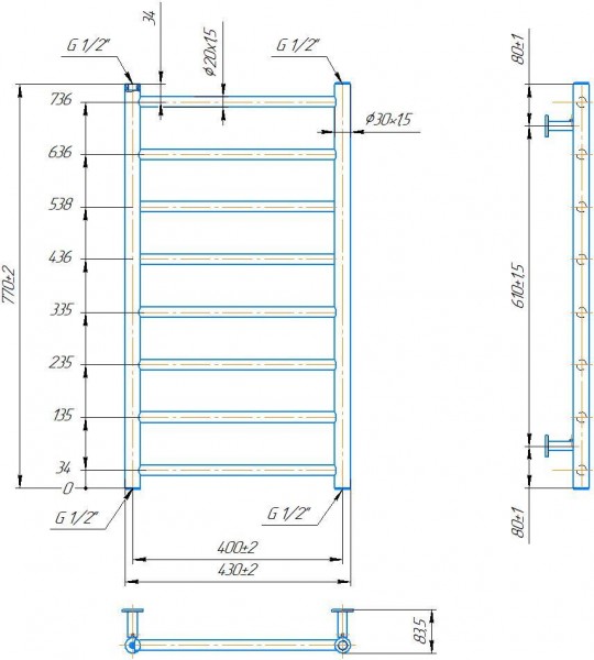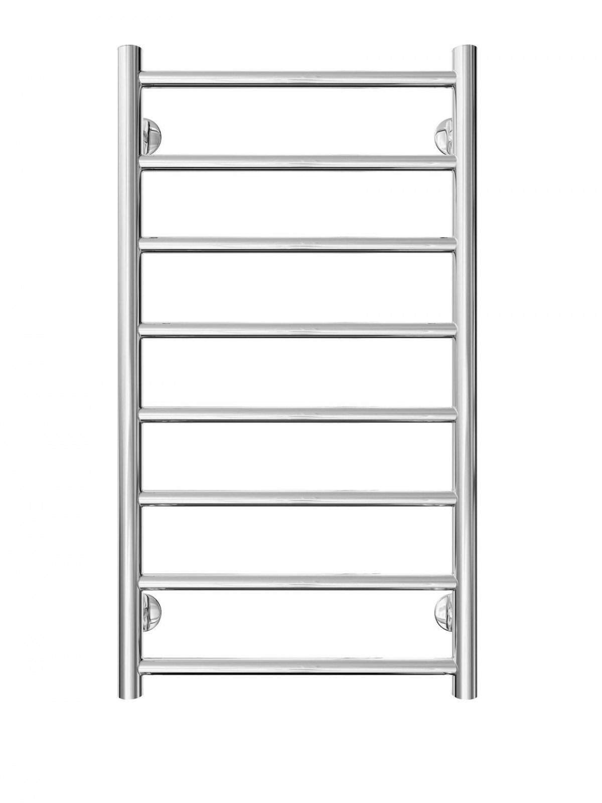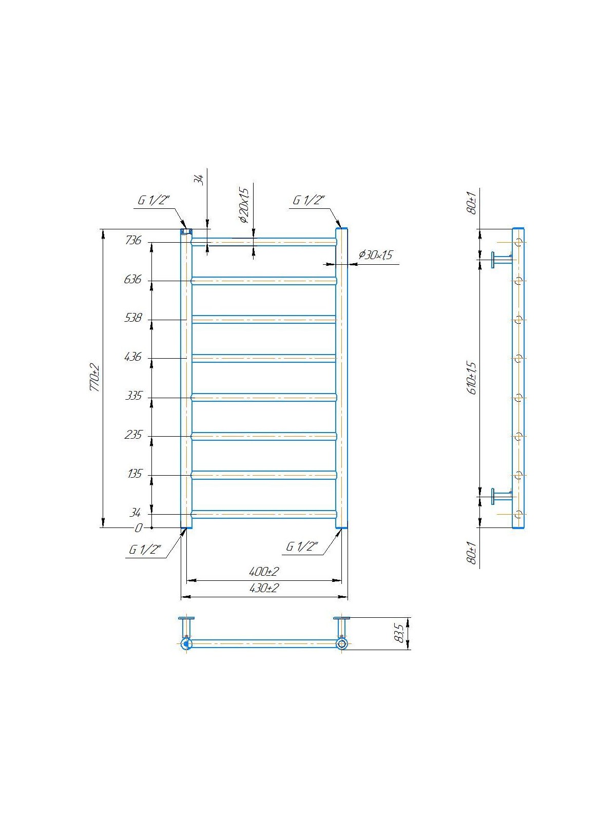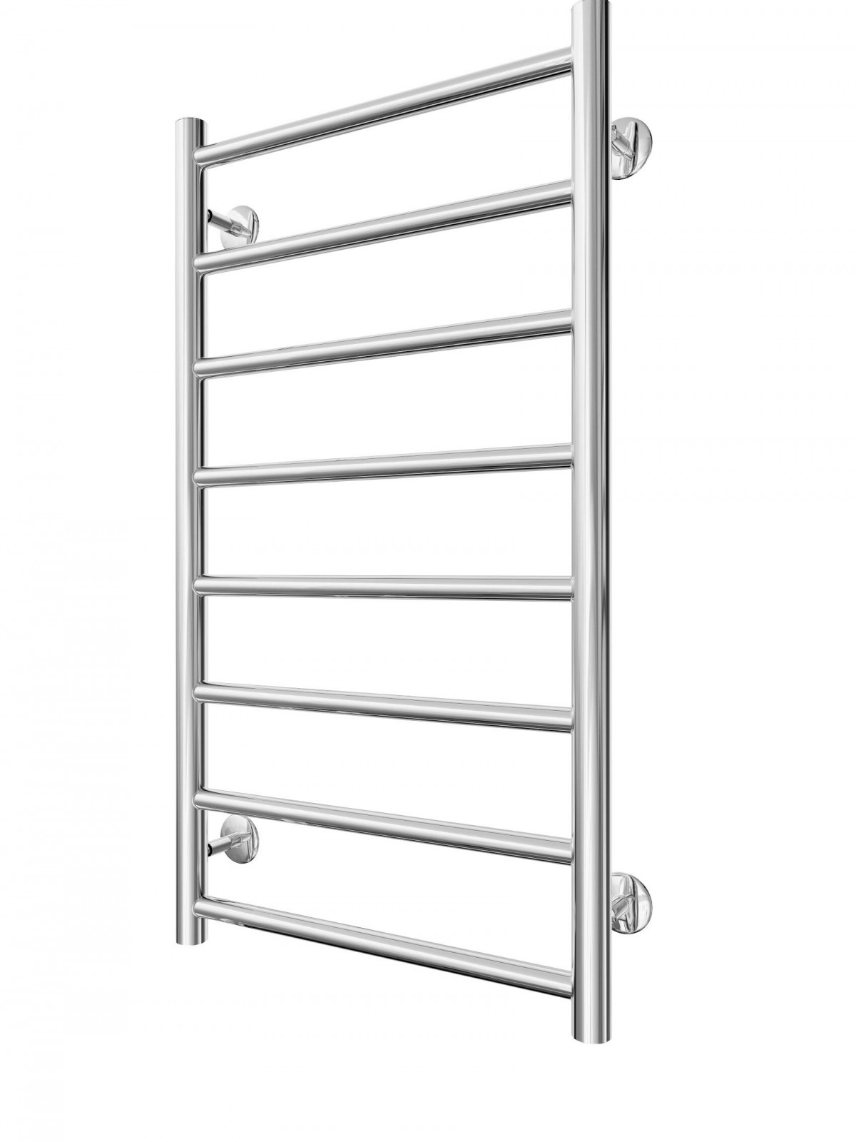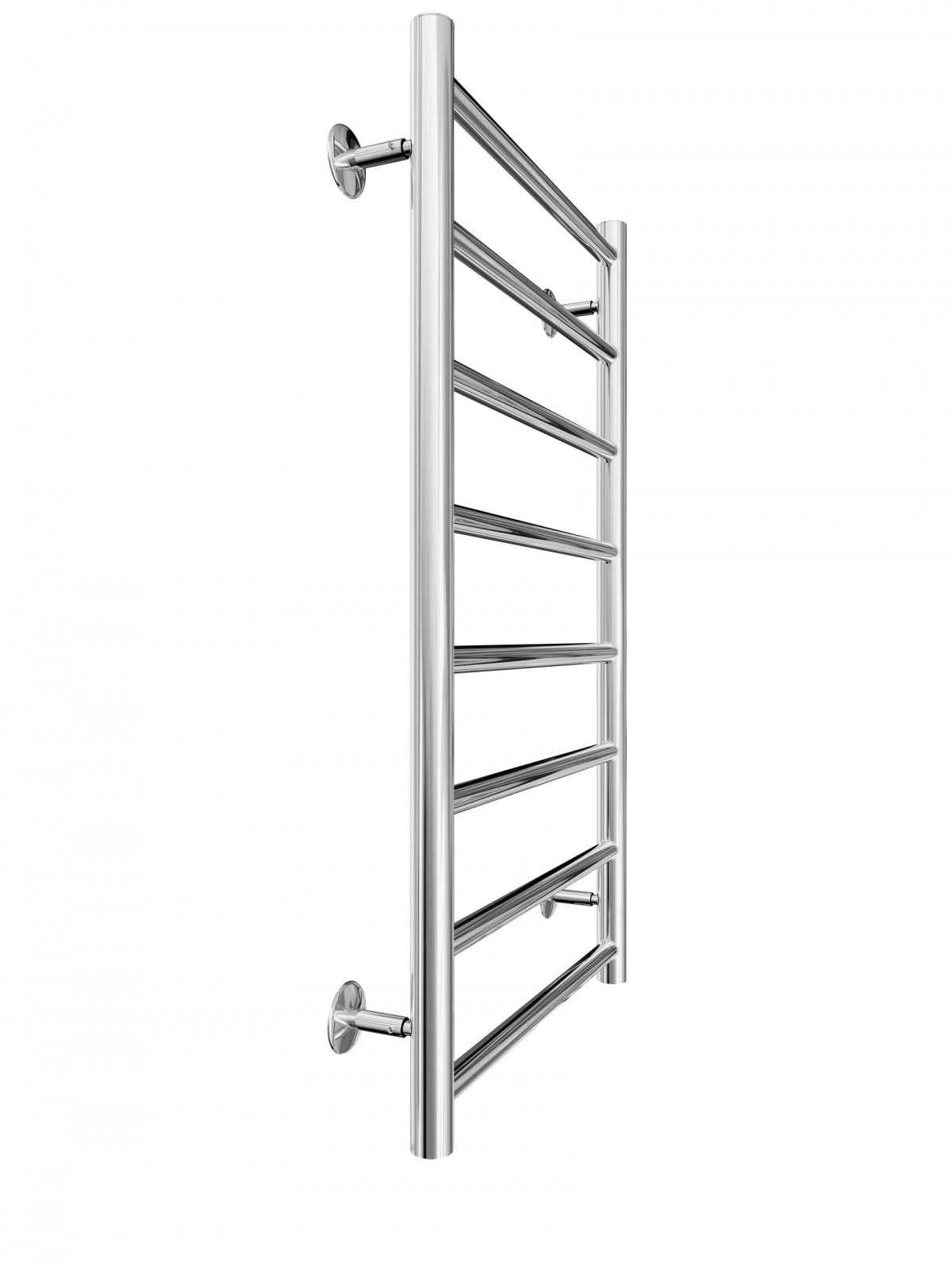 Рушникосушарка INOX Флет 770х430/400. Розміри: висота - 770 мм, ширина - 430 мм, глибина 80 мм, міжцентрова відстань для підключення - 400 мм, діаметр підключення G1/2''. Варіанти підключення: нижнє, діагональне та бічне. Кількість ребер - 8. Виготовлена з полірованої нержавіючої сталі без хромування. Для всесезонної роботи водяну модель можна переобладнати на комбіновану, встановивши ТЕН, рекомендована потужність 200 Вт. Сумісні аксесуари: поворотні полиці та навісні гачки для збільшення функціональності. Рекомендовано підключати рушникосушарку за допомогою кранів Маріо. Гарантія - 50 років в закритій системі опалення, 5 років у централізованій.