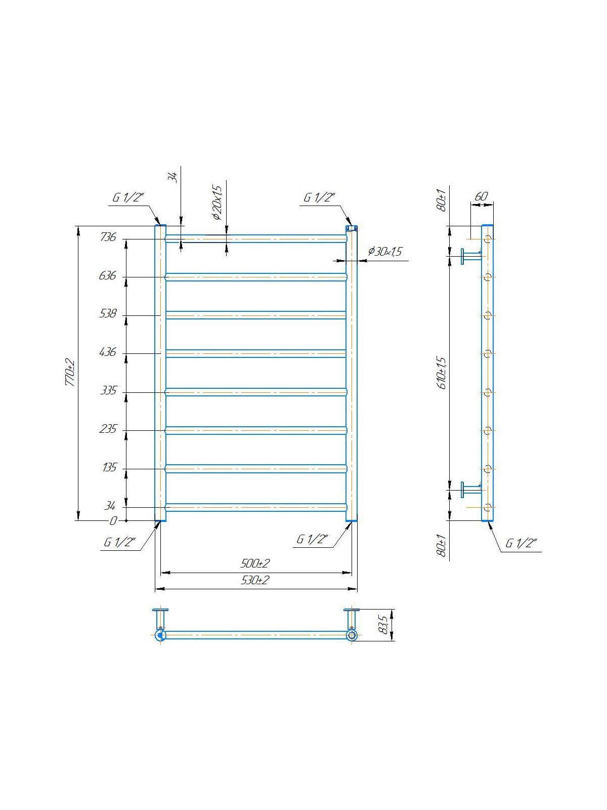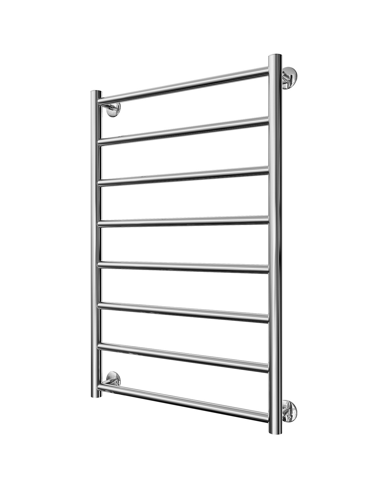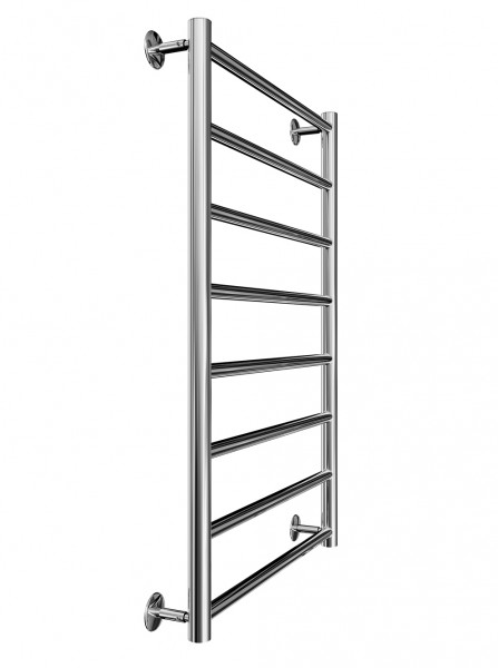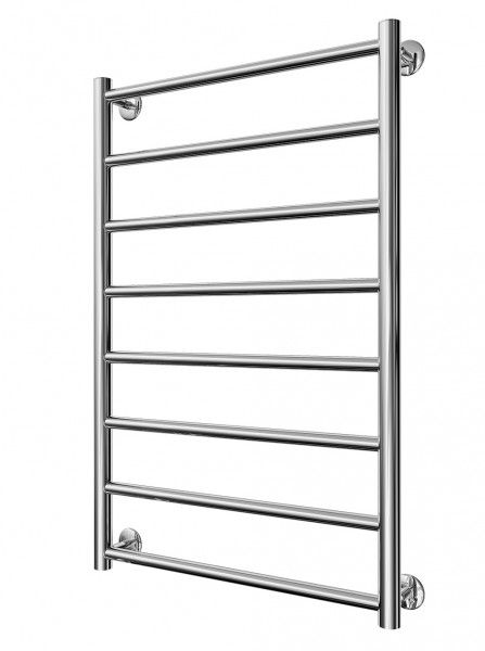 Рушникосушарка INOX Флет 770х530/500. Розміри: висота - 770 мм, ширина - 530 мм, глибина 80 мм, міжцентрова відстань для підключення - 500 мм, діаметр підключення G1/2''. Варіанти підключення: нижнє, діагональне та бічне. Кількість ребер - 8. Виготовлена з полірованої нержавіючої сталі без хромування. Для всесезонної роботи водяну модель можна переобладнати на комбіновану, встановивши ТЕН, рекомендована потужність 200 Вт. Сумісні аксесуари: поворотні полиці та навісні гачки для збільшення функціональності. Рекомендовано підключати рушникосушарку за допомогою кранів Маріо. Гарантія - 50 років в закритій системі опалення, 5 років у централізованій.