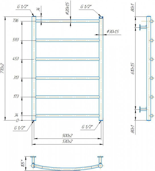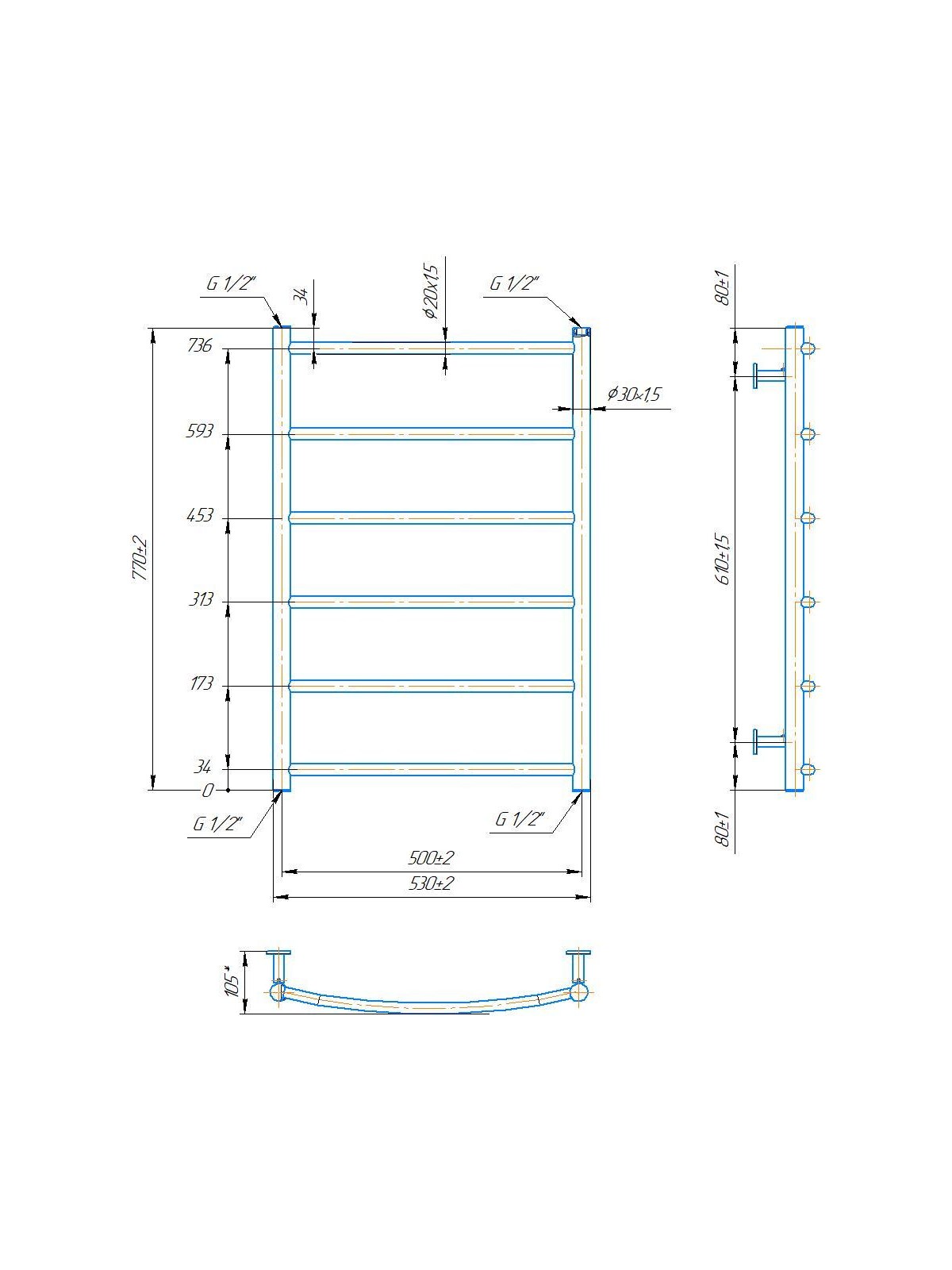 Рушникосушарка INOX Класік HP 770х530/500. Розміри: висота - 770 мм, ширина - 530 мм, глибина 85 мм, міжцентрова відстань для підключення - 500 мм, діаметр підключення G1/2''. Варіанти підключення: нижнє, діагональне та бічне. Кількість ребер - 6. Виготовлена з полірованої нержавіючої сталі без хромування. Для всесезонної роботи водяну модель можна переобладнати на комбіновану, встановивши ТЕН, рекомендована потужність 200 Вт. Сумісні аксесуари: поворотні полиці та навісні гачки для збільшення функціональності. Рекомендовано підключати рушникосушарку за допомогою кранів Маріо. Гарантія - 50 років в закритій системі опалення, 5 років у централізованій.