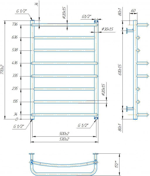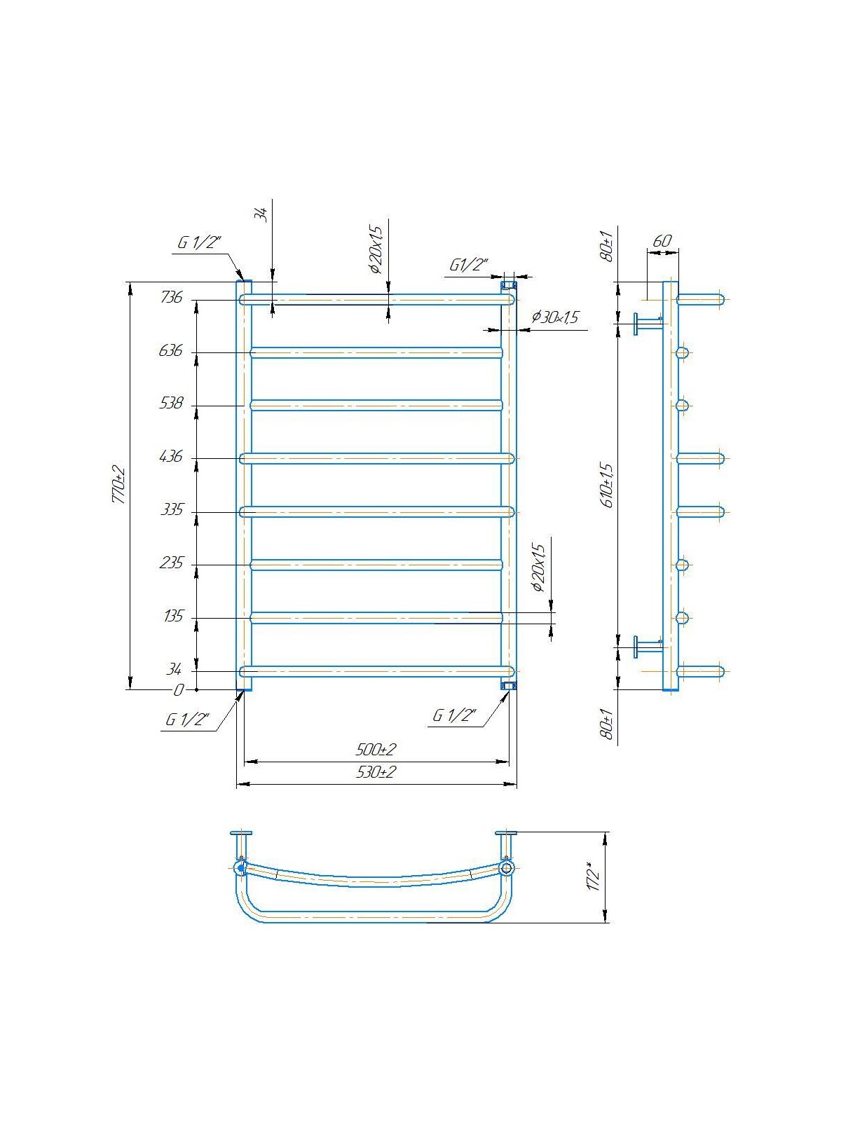 Рушникосушарка INOX Люкс 770х530/500. Розміри: висота - 770 мм, ширина - 530 мм, глибина 160 мм, міжцентрова відстань для підключення - 500 мм, діаметр підключення G1/2''. Варіанти підключення: нижнє, діагональне та бічне. Кількість ребер - 8. Виготовлена з полірованої нержавіючої сталі без хромування. Для всесезонної роботи водяну модель можна переобладнати на комбіновану, встановивши ТЕН, рекомендована потужність 200 Вт. Сумісні аксесуари: поворотні полиці та навісні гачки для збільшення функціональності. Рекомендовано підключати рушникосушарку за допомогою кранів Маріо. Гарантія - 50 років в закритій системі опалення, 5 років у централізованій.