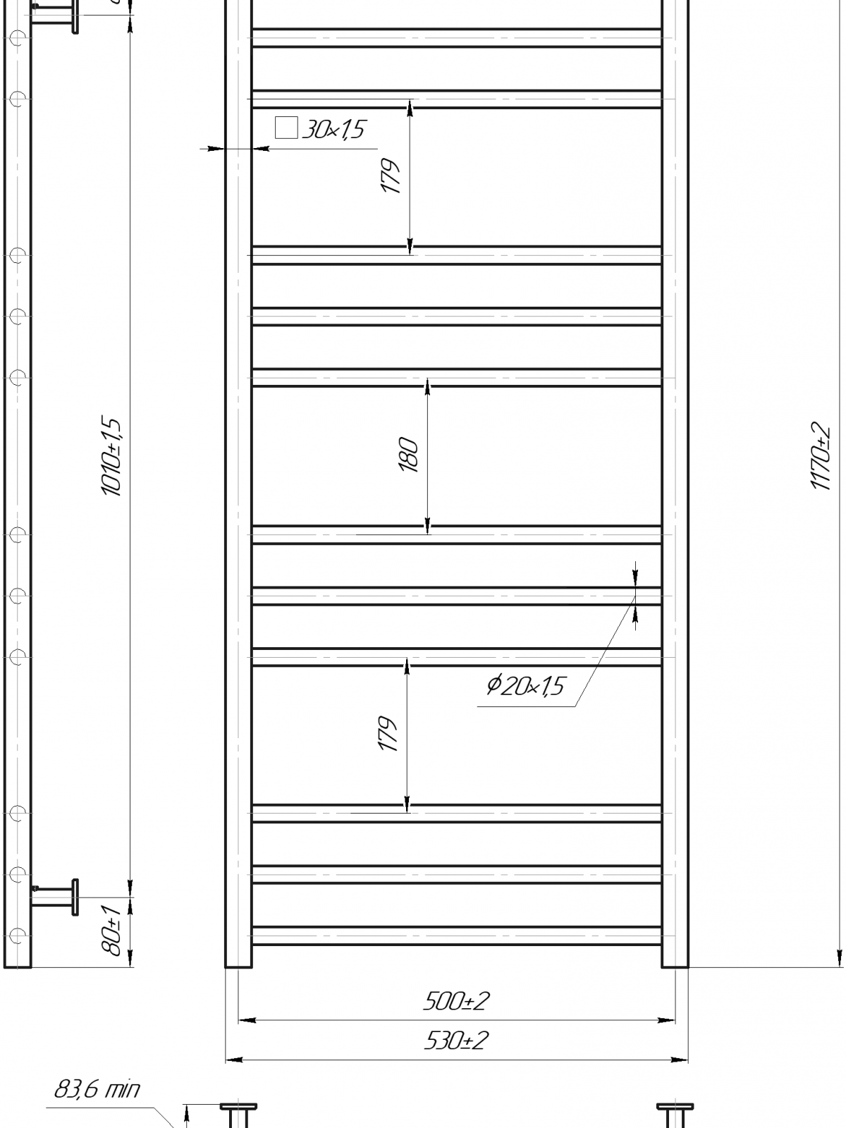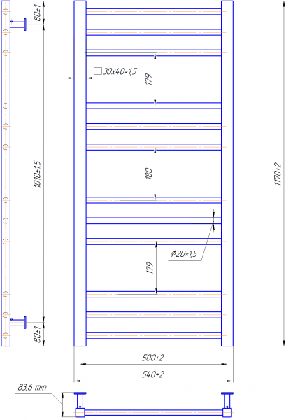Рушникосушарка INOX Преміум Класік 1170х540/500. Розміри: висота - 1 170 мм, ширина - 530 мм, глибина 80 мм, міжцентрова відстань для підключення - 500 мм, діаметр підключення G1/2''. Варіанти підключення: нижнє, діагональне та бічне. Кількість ребер - 12. Виготовлена з полірованої нержавіючої сталі без хромування. Для всесезонної роботи водяну модель можна переобладнати на комбіновану, встановивши ТЕН, рекомендована потужність 300 Вт. Сумісні аксесуари: поворотні полиці та навісні гачки для збільшення функціональності. Рекомендовано підключати рушникосушарку за допомогою кранів Маріо. Гарантія - 50 років в закритій системі опалення, 5 років у централізованій.