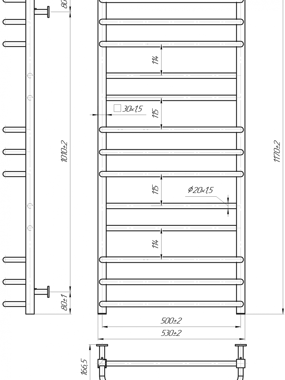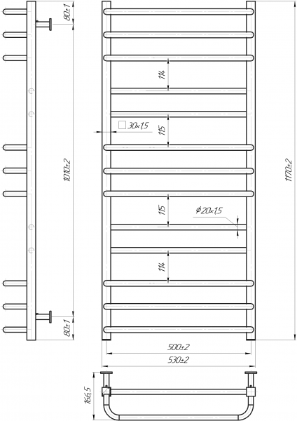Рушникосушарка INOX Преміум Люкс 1170х540/500. Розміри: висота - 1 170 мм, ширина - 530 мм, глибина 170 мм, міжцентрова відстань для підключення - 500 мм, діаметр підключення G1/2''. Варіанти підключення: нижнє, діагональне та бічне. Кількість ребер - 13. Виготовлена з полірованої нержавіючої сталі без хромування. Для всесезонної роботи водяну модель можна переобладнати на комбіновану, встановивши ТЕН, рекомендована потужність 600 Вт. Сумісні аксесуари: поворотні полиці та навісні гачки для збільшення функціональності. Рекомендовано підключати рушникосушарку за допомогою кранів Маріо. Гарантія - 50 років в закритій системі опалення, 5 років у централізованій.