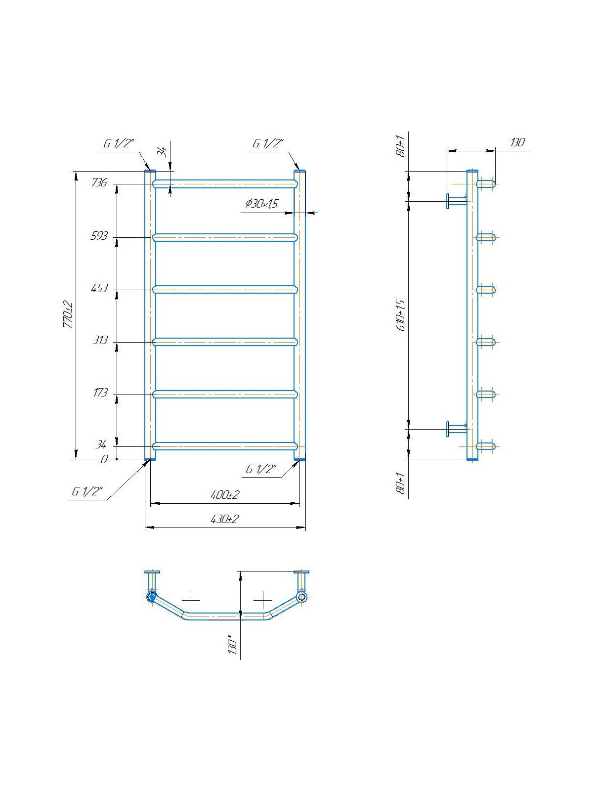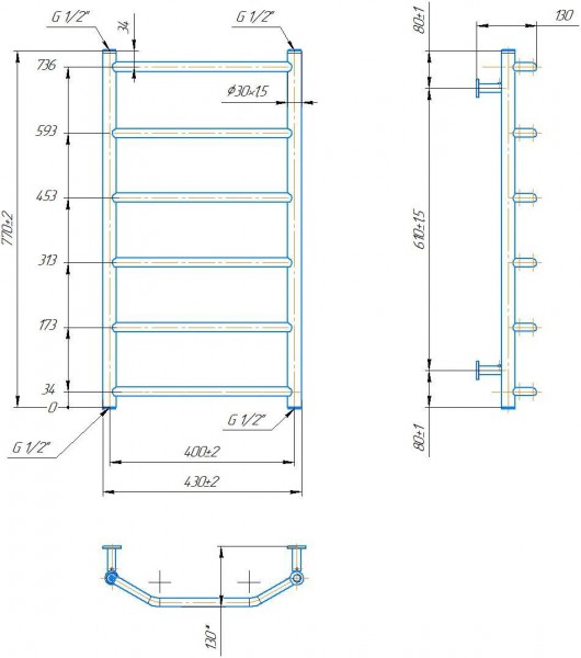Рушникосушарка INOX Трапеція 770х430/400. Розміри: висота - 770 мм, ширина - 430 мм, глибина 130 мм, міжцентрова відстань для підключення - 400 мм, діаметр підключення G1/2''. Варіанти підключення: нижнє, діагональне та бічне. Кількість ребер - 6. Виготовлена з полірованої нержавіючої сталі без хромування. Для всесезонної роботи водяну модель можна переобладнати на комбіновану, встановивши ТЕН, рекомендована потужність 200 Вт. Сумісні аксесуари: поворотні полиці та навісні гачки для збільшення функціональності. Рекомендовано підключати рушникосушарку за допомогою кранів Маріо. Гарантія - 50 років в закритій системі опалення, 5 років у централізованій.