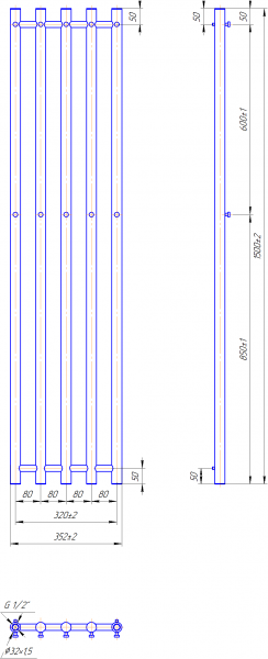 Рушникосушарка INOX Туб 1500х352/320. Розміри: висота - 1 800 мм, ширина - 352 мм, глибина 80 мм, міжцентрова відстань для підключення - 320 мм, діаметр підключення G1/2''. Варіанти підключення: нижнє, діагональне та бічне. Кількість ребер - 5. Виготовлена з полірованої нержавіючої сталі без хромування. Для всесезонної роботи водяну модель можна переобладнати на комбіновану, встановивши ТЕН, рекомендована потужність 600 Вт. Сумісні аксесуари: поворотні полиці та навісні гачки для збільшення функціональності. Рекомендовано підключати рушникосушарку за допомогою кранів Маріо. Гарантія - 50 років в закритій системі опалення, 5 років у централізованій.