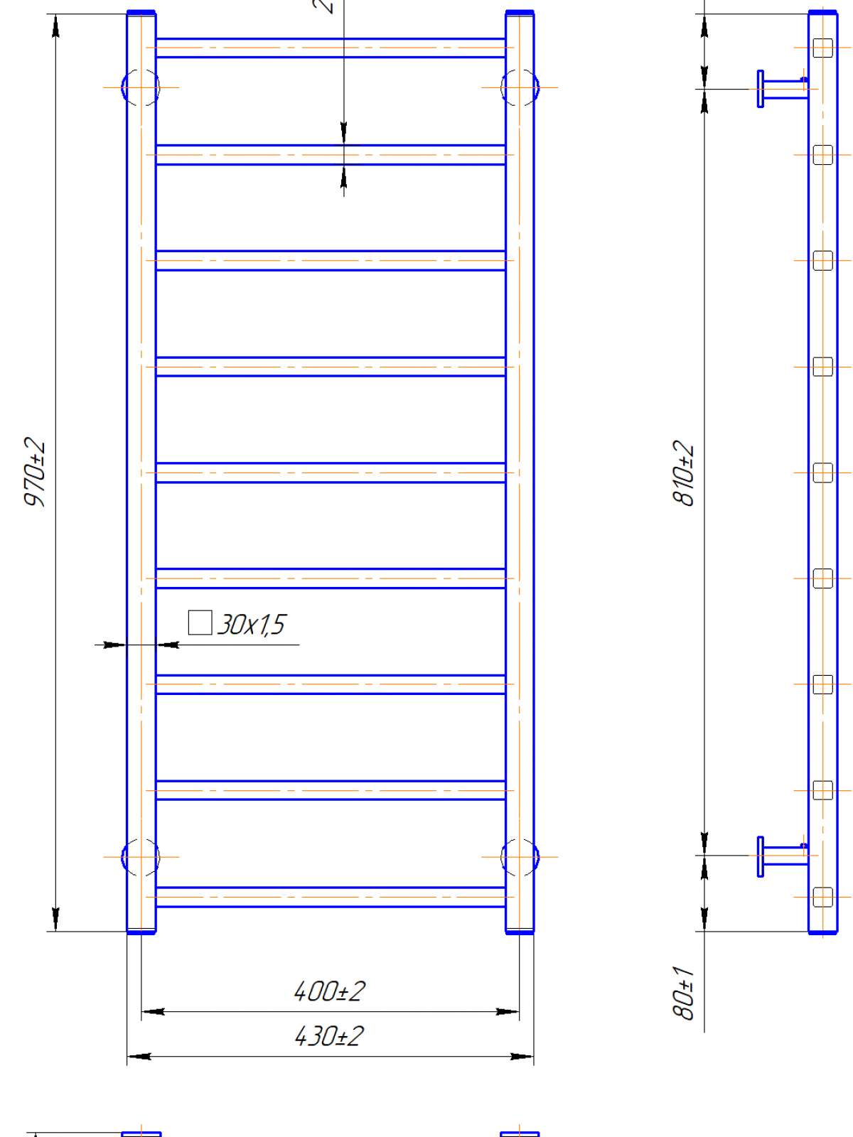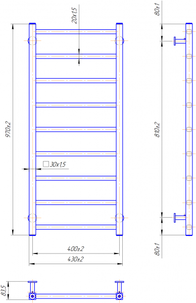 Рушникосушарка INOX Токіо 970х430/400. Розміри: висота - 970 мм, ширина - 430 мм, глибина 80 мм, міжцентрова відстань для підключення - 0 мм, діаметр підключення G1/2''. Варіанти підключення: нижнє, діагональне та бічне. Кількість ребер - 0. Виготовлена з полірованої нержавіючої сталі без хромування. Для всесезонної роботи водяну модель можна переобладнати на комбіновану, встановивши ТЕН, рекомендована потужність . Сумісні аксесуари: поворотні полиці та навісні гачки для збільшення функціональності. Рекомендовано підключати рушникосушарку за допомогою кранів Маріо. Гарантія - 50 років в закритій системі опалення, 5 років у централізованій.