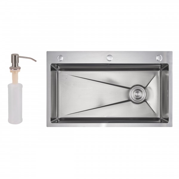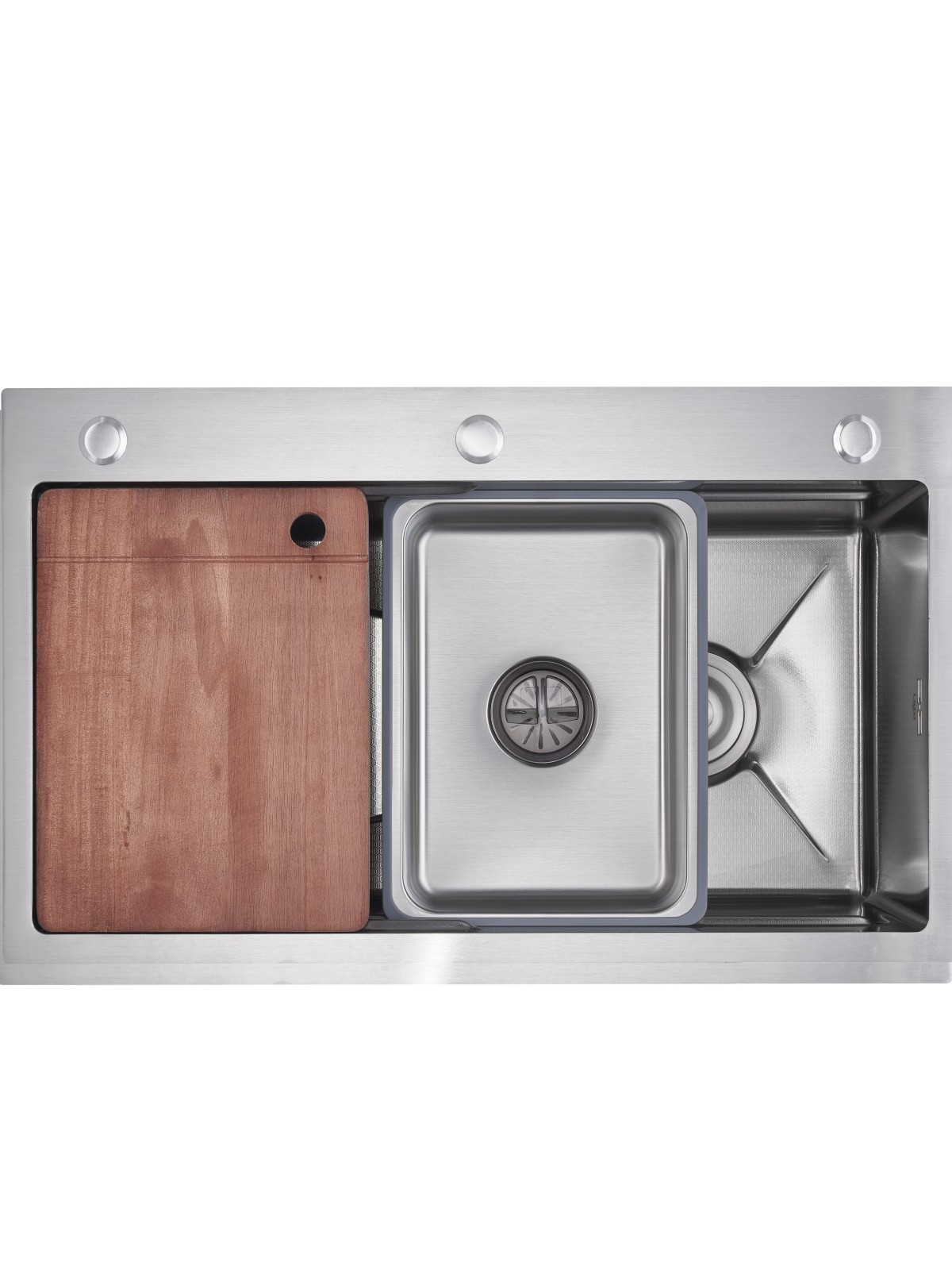 Комплектація: Мийка, сифон, злив/перелив, корзинчастий вентиль, кошик, кухонна дошка, дозатор, кріплення.
