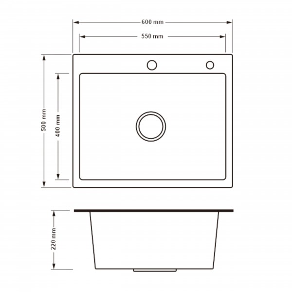 Комплектація: Мийка, сифон, злив/перелив, корзинчастий вентиль, дозатор, кріплення.