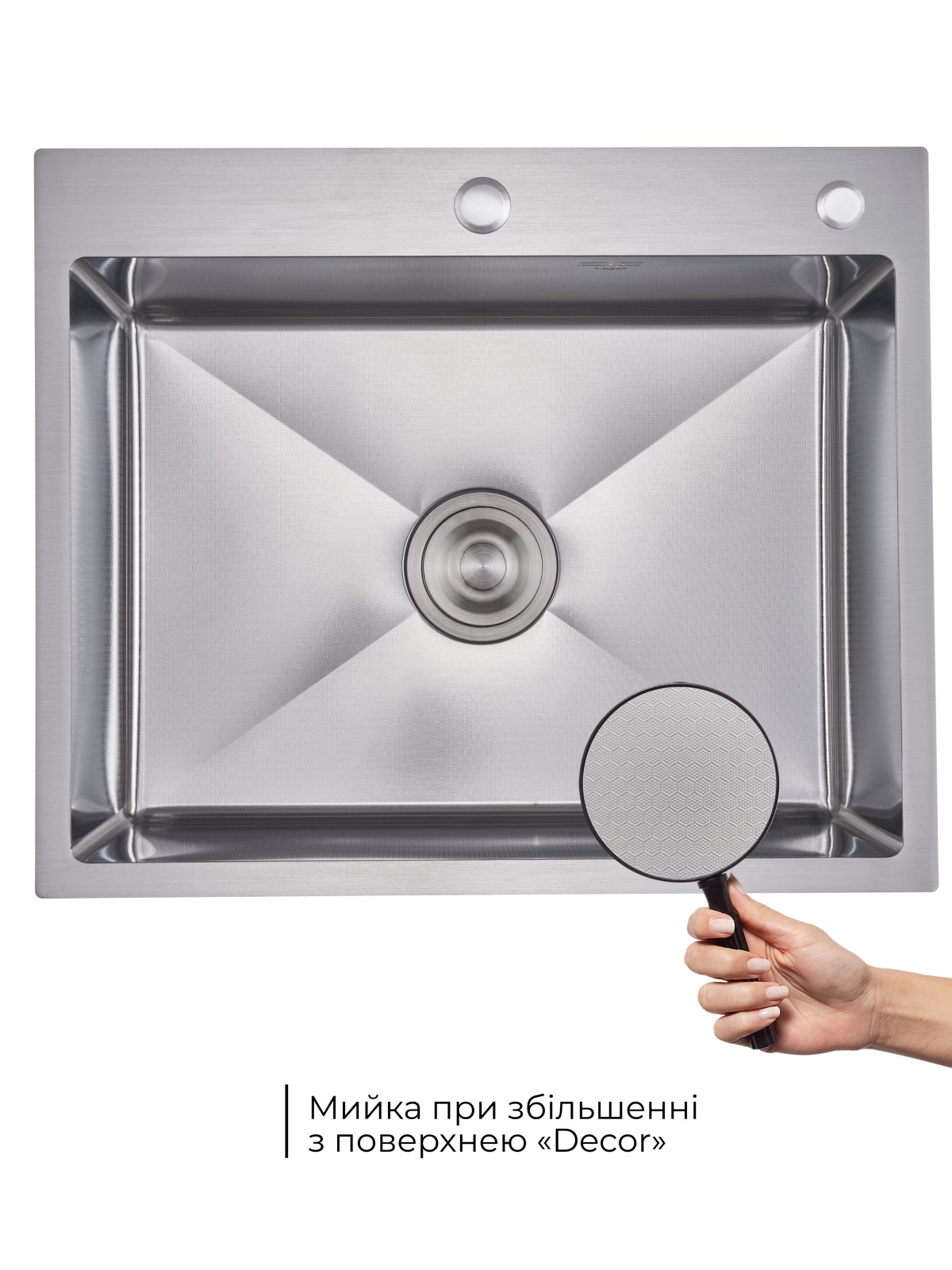 Інтегрована мийка Lidz Handmade з поверхнею Decor Honeycomb. Міцна сталь 2,5/0,5 мм і виразна текстура роблять модель надійною та стильною. Зручна форма забезпечує комфорт у щоденному користуванні.