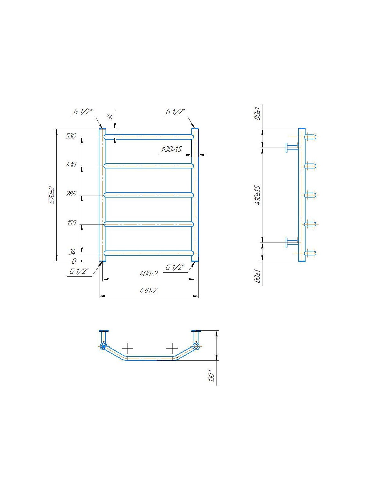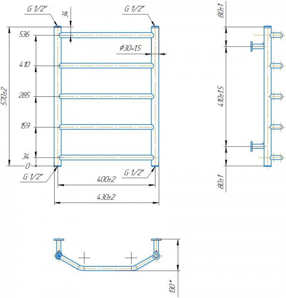 Рушникосушарка INOX Трапеція 570х430/400. Розміри: висота - 570 мм, ширина - 430 мм, глибина 130 мм, міжцентрова відстань для підключення - 400 мм, діаметр підключення G1/2''. Варіанти підключення: нижнє, діагональне та бічне. Кількість ребер - 5. Виготовлена з полірованої нержавіючої сталі без хромування. Для всесезонної роботи водяну модель можна переобладнати на комбіновану, встановивши ТЕН, рекомендована потужність 120 Вт. Сумісні аксесуари: поворотні полиці та навісні гачки для збільшення функціональності. Рекомендовано підключати рушникосушарку за допомогою кранів Маріо. Гарантія - 50 років в закритій системі опалення, 5 років у централізованій.
