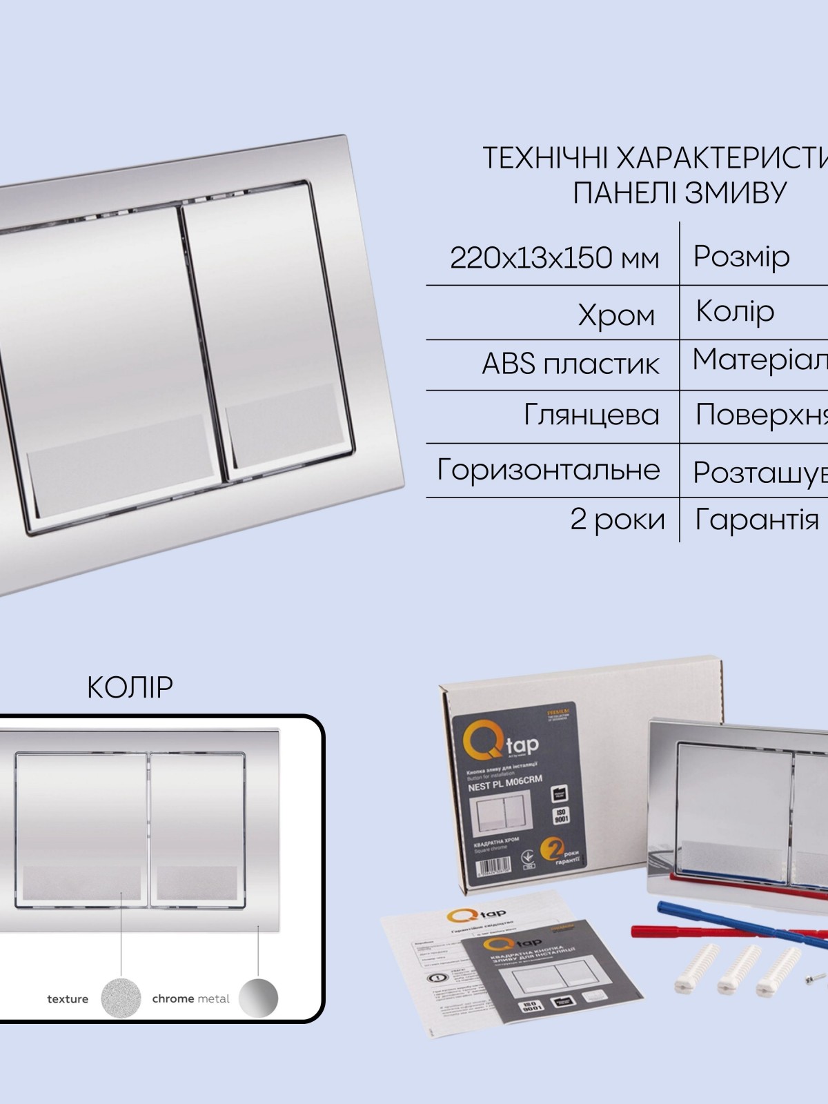 Склад набору: Інсталяція: Qtap Nest QT0133M425. Панель змиву: Qtap Nest QT0111M06028CRM. Унітаз із сидінням: Qtap Robin QT13332381AW.