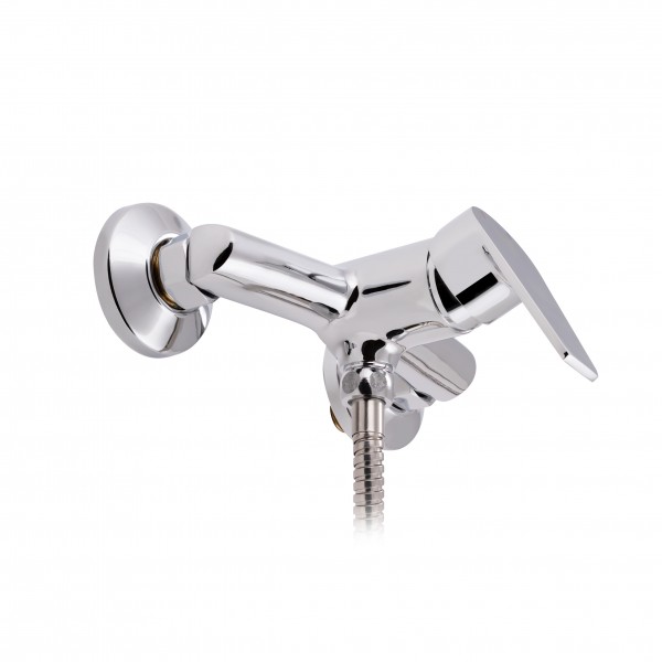 Змішувач для душу Lidz (CRM) 19 46 010 виконаний з цинку з глянцевою блискучою поверхнею. Він і тримач ручного душу монтуються на стіну. Декоративні розетки приховають похибки установки на обробці ванної кімнати. Подача води здійснюється завдяки повороту важеля в потрібне положення.