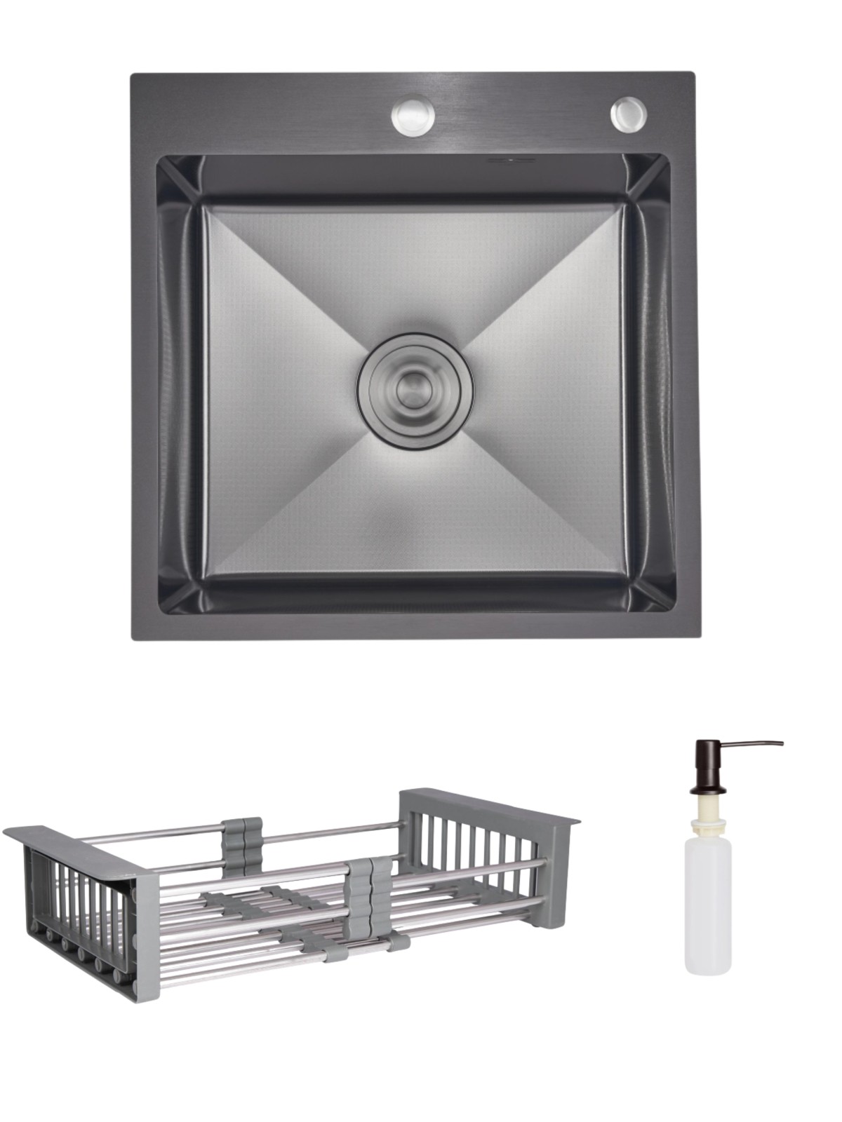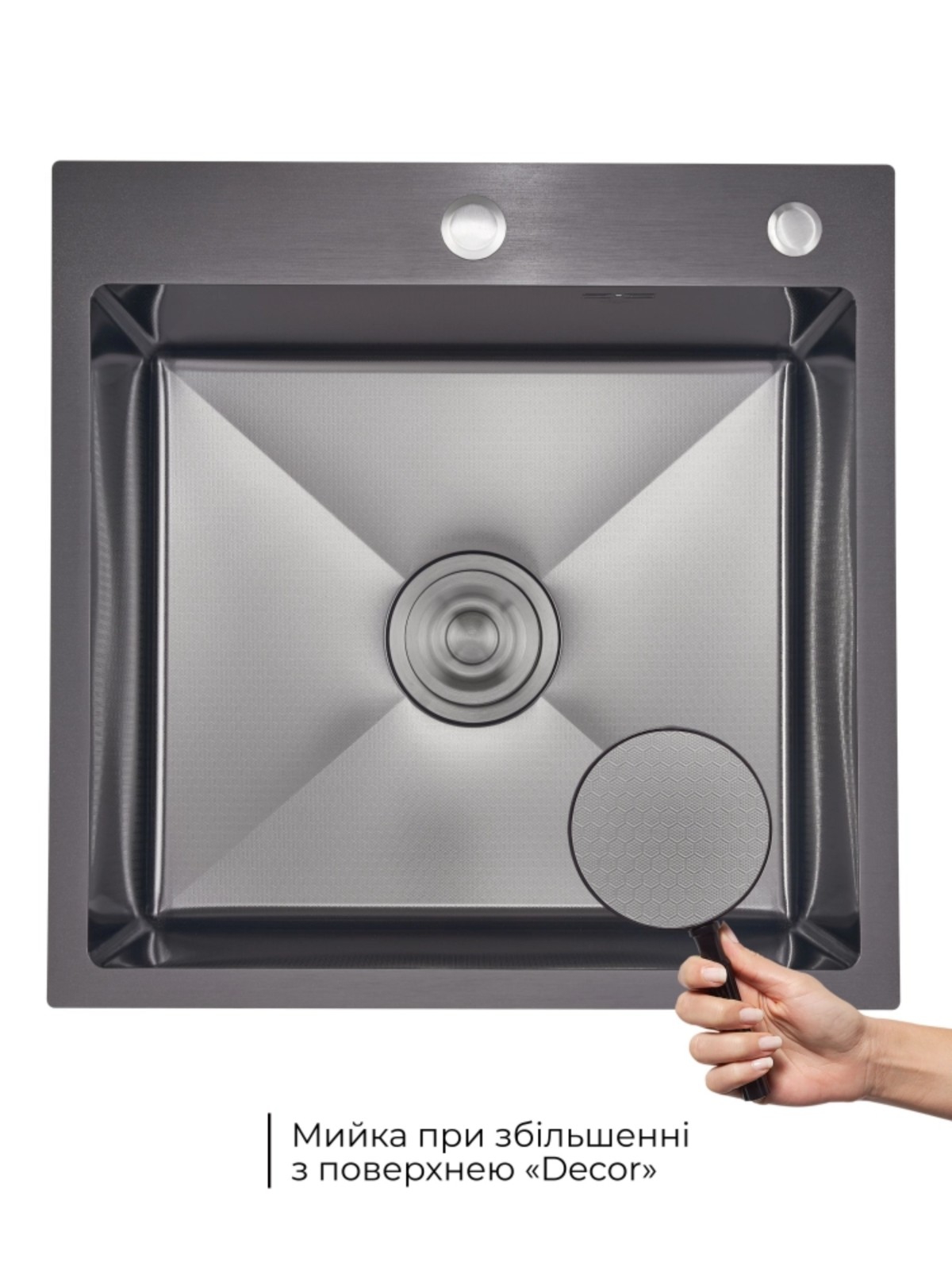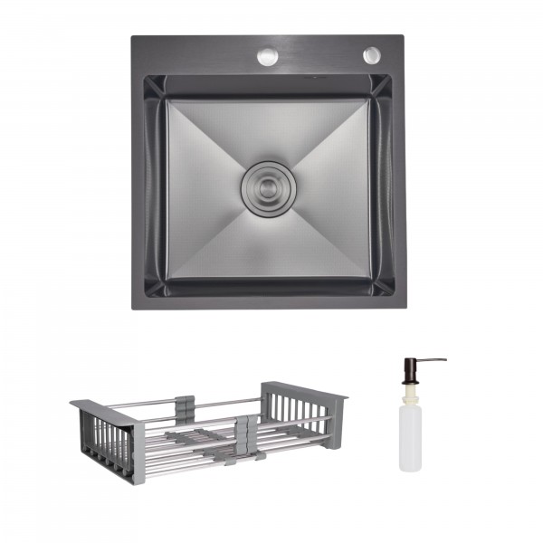 Інтегрована мийка з нержавіючої сталі з покриттям Black PVD та візерунком Honeycomb. У комплекті namp;#8212; дозатор і кошик Lidz K01G, що додають функціональності та завершеності робочій зоні.