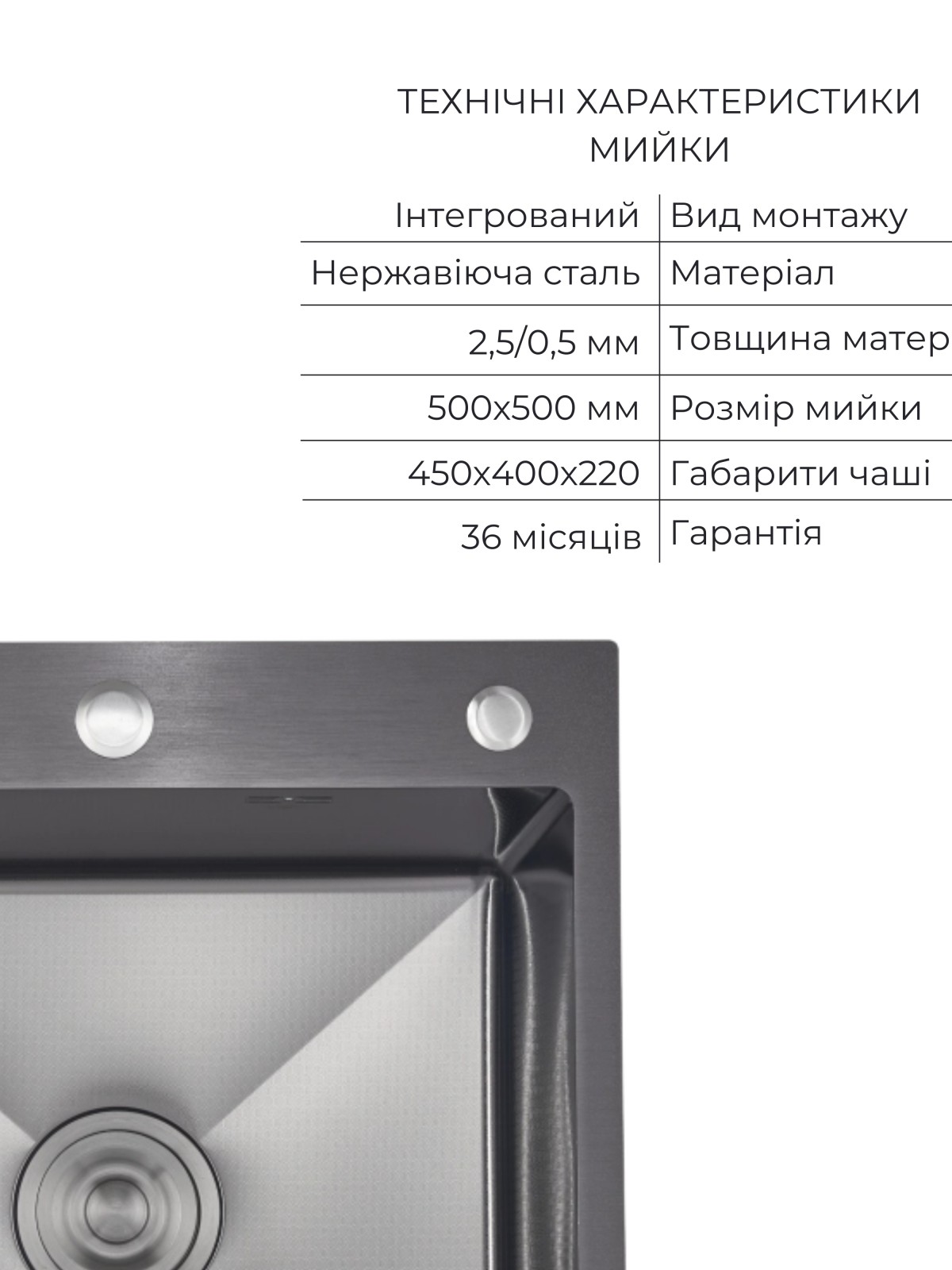 Матеріал: Нержавіюча сталь – мийка; нержавіюча сталь/пластик - кошик