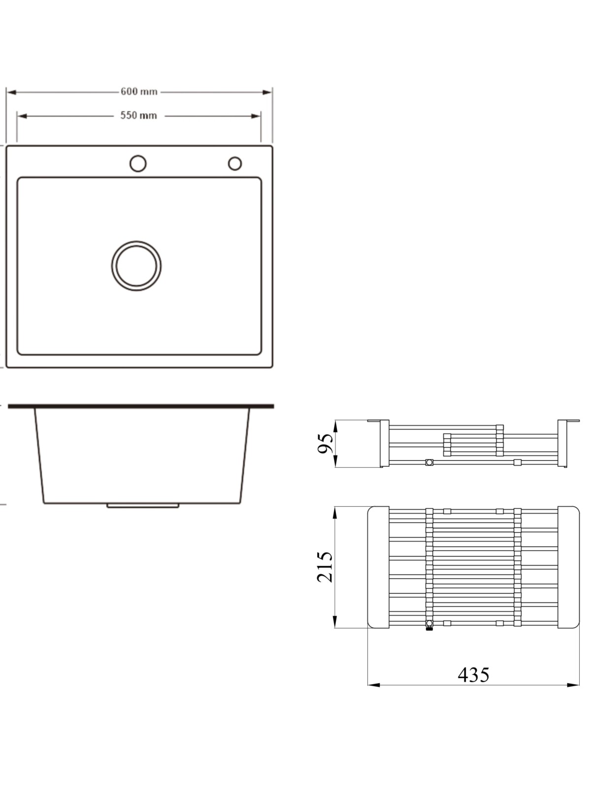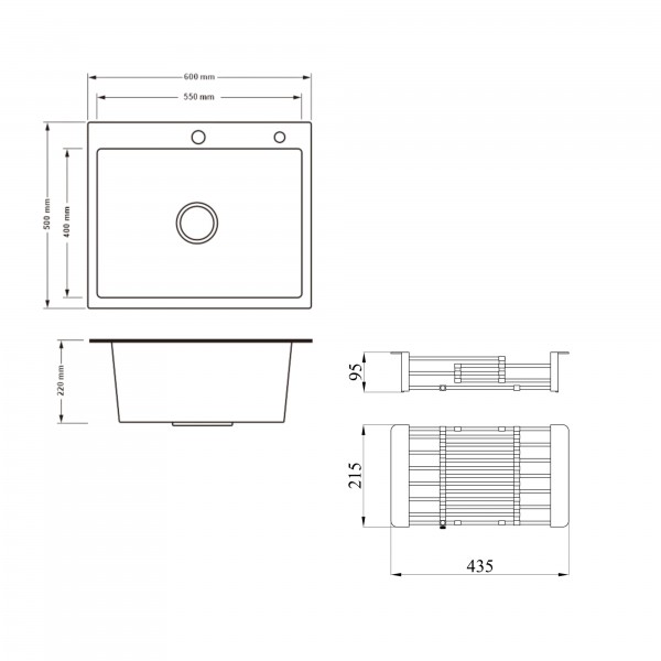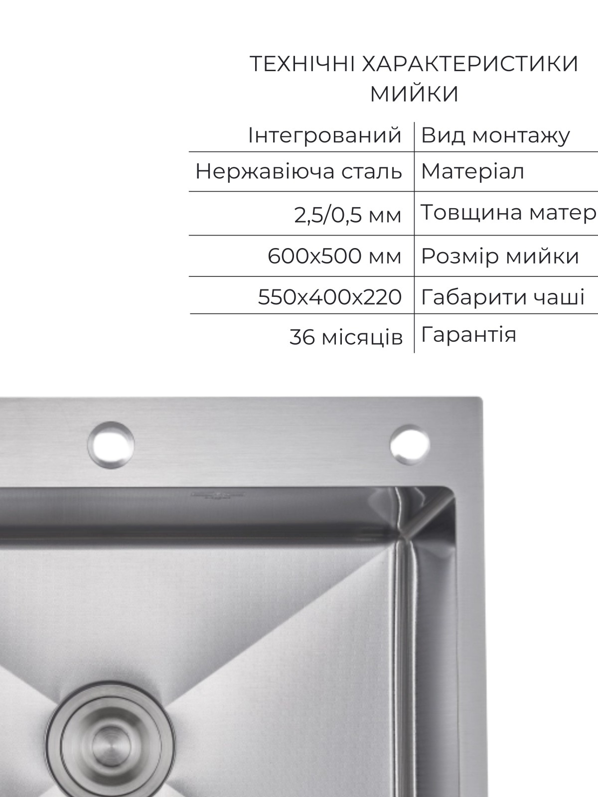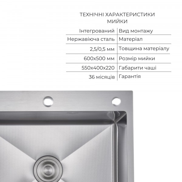 Матеріал: Нержавіюча сталь – мийка; нержавіюча сталь/пластик - кошик