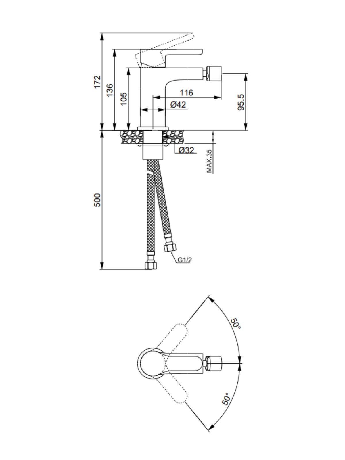 Комплектація: Змішувач, гнучке підведення, кріплення.