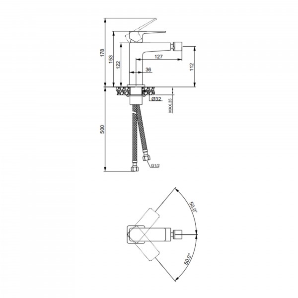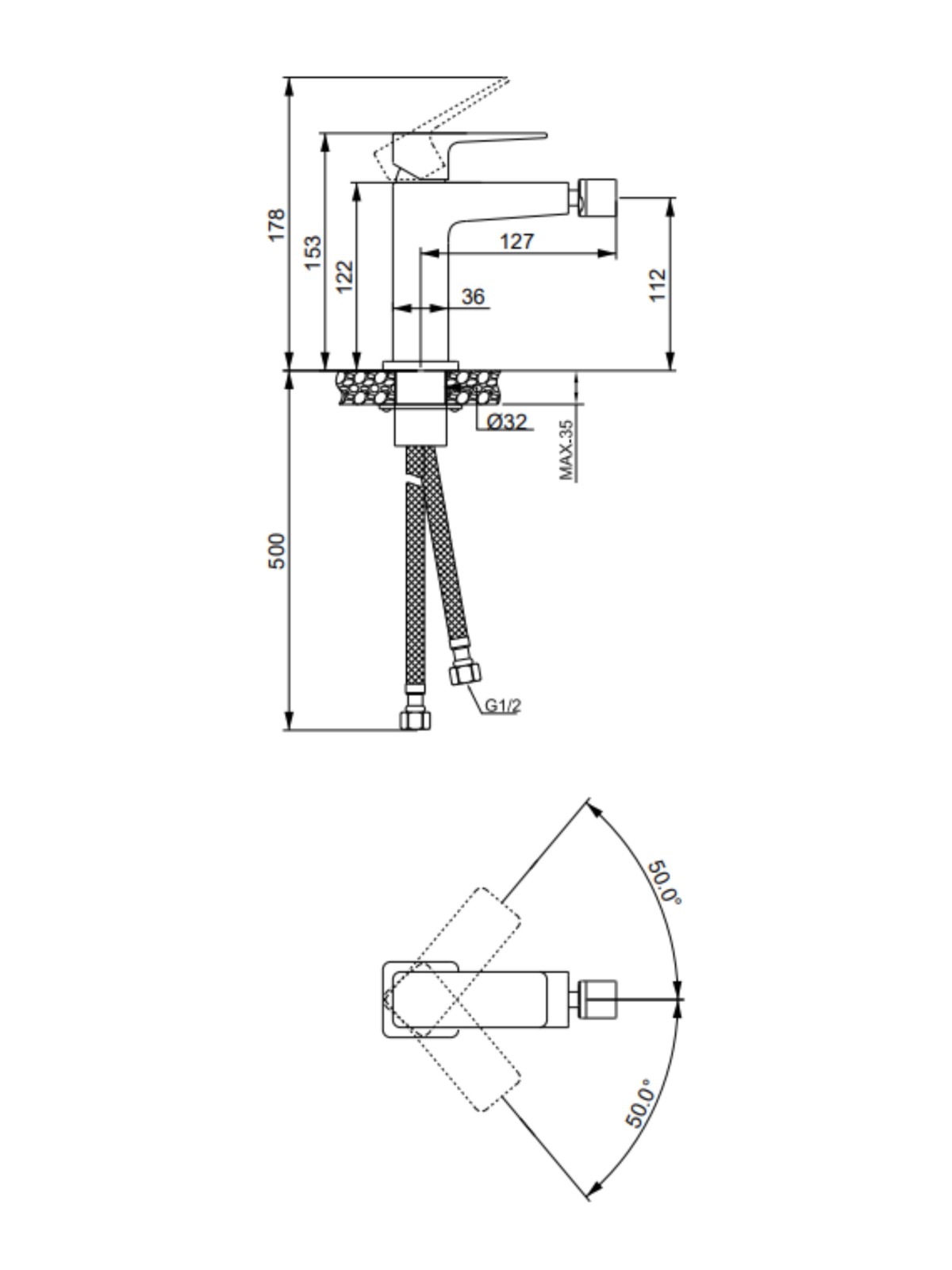Комплектація: Змішувач, гнучке підведення, кріплення.