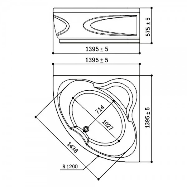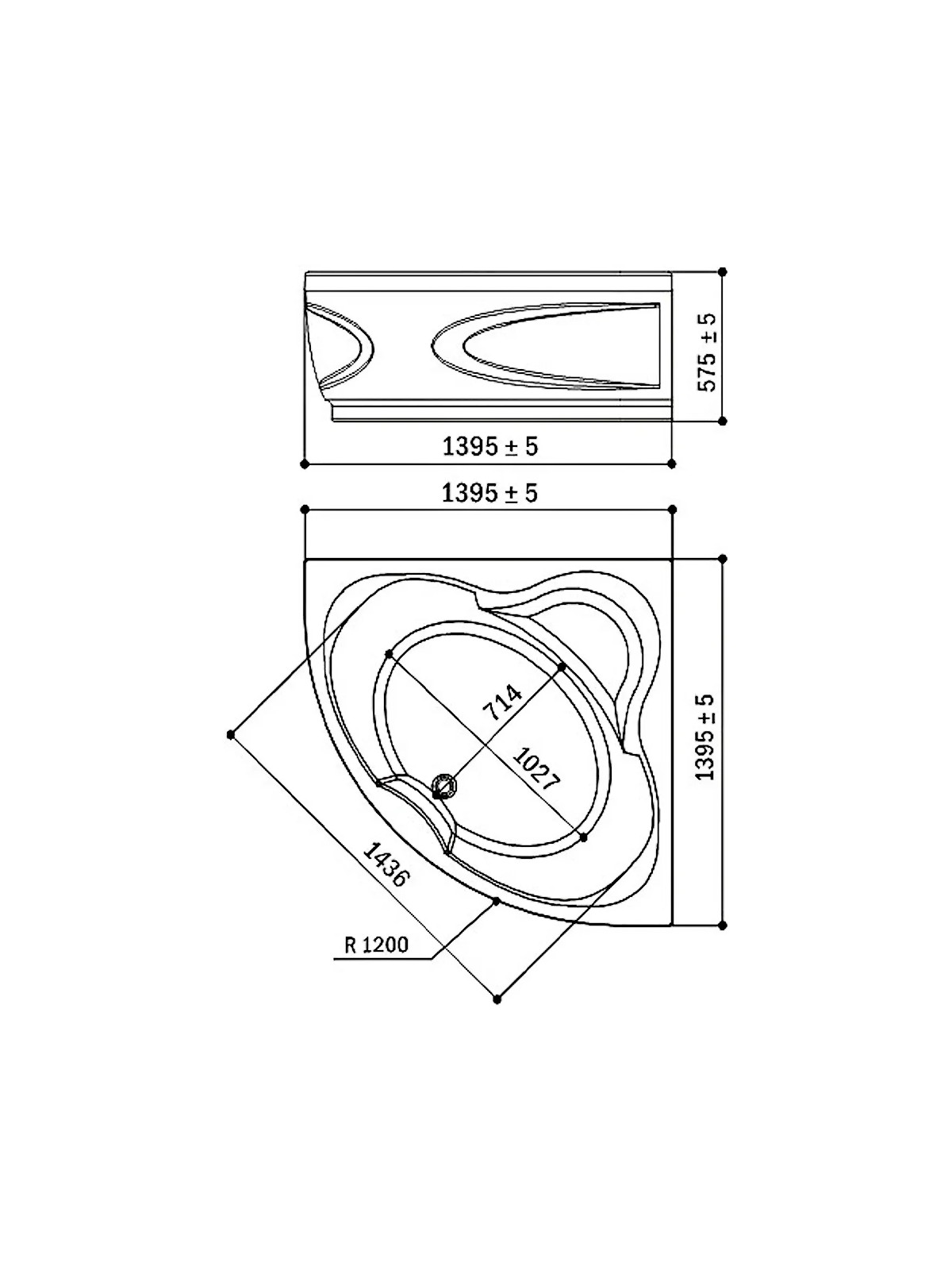Ванна акрилова WGTRialto GARDA 140x140x58 на рамі, із фронтальною панеллю, колір білий глянець (1 сорт)