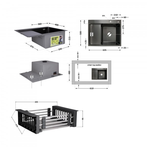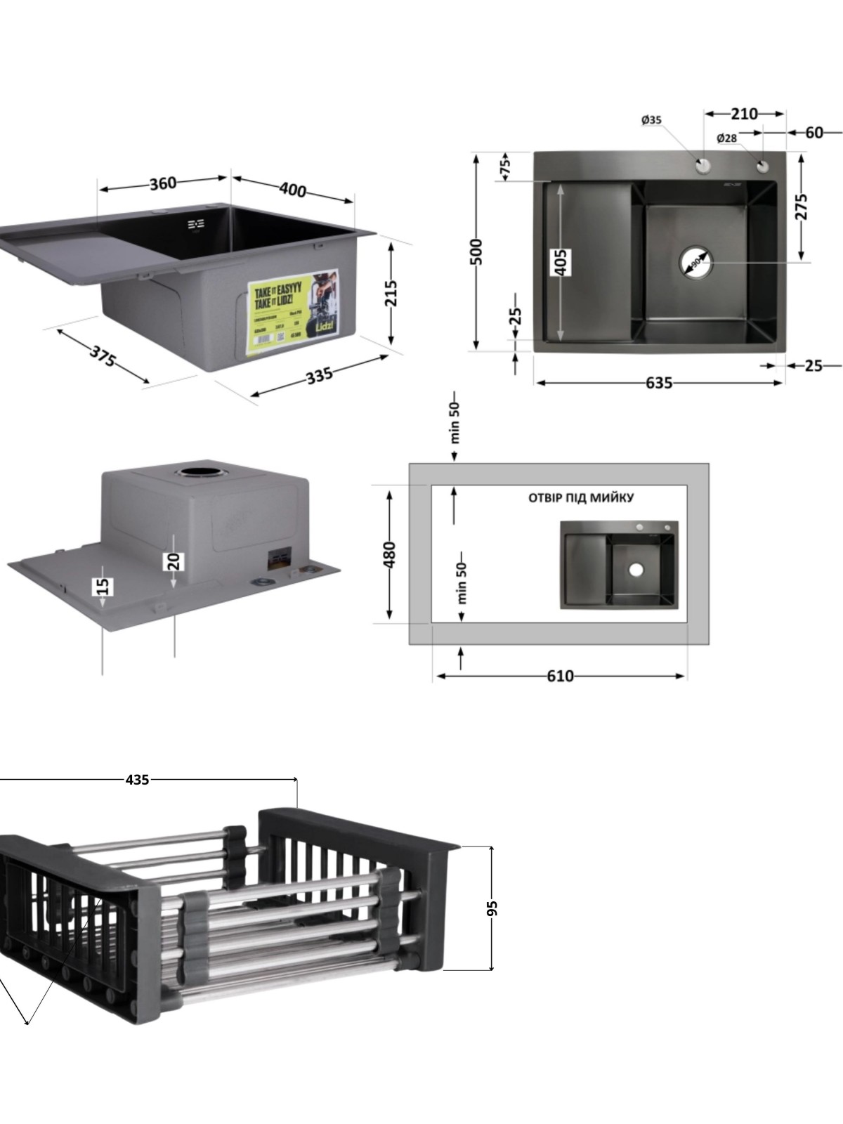Комплектація: Мийка (LDH6350BRPVD45590), кошик (LIDZK01B)