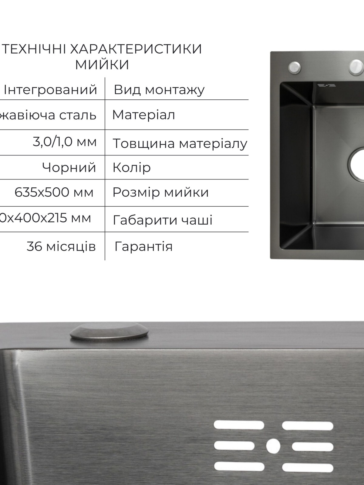 Матеріал: Нержавіюча сталь - мийка; нержавіюча сталь / пластик - кошик