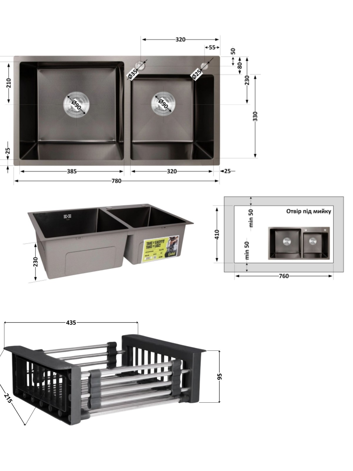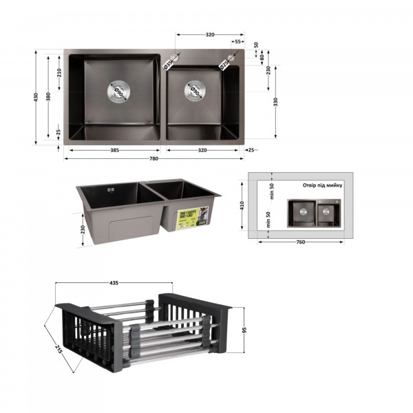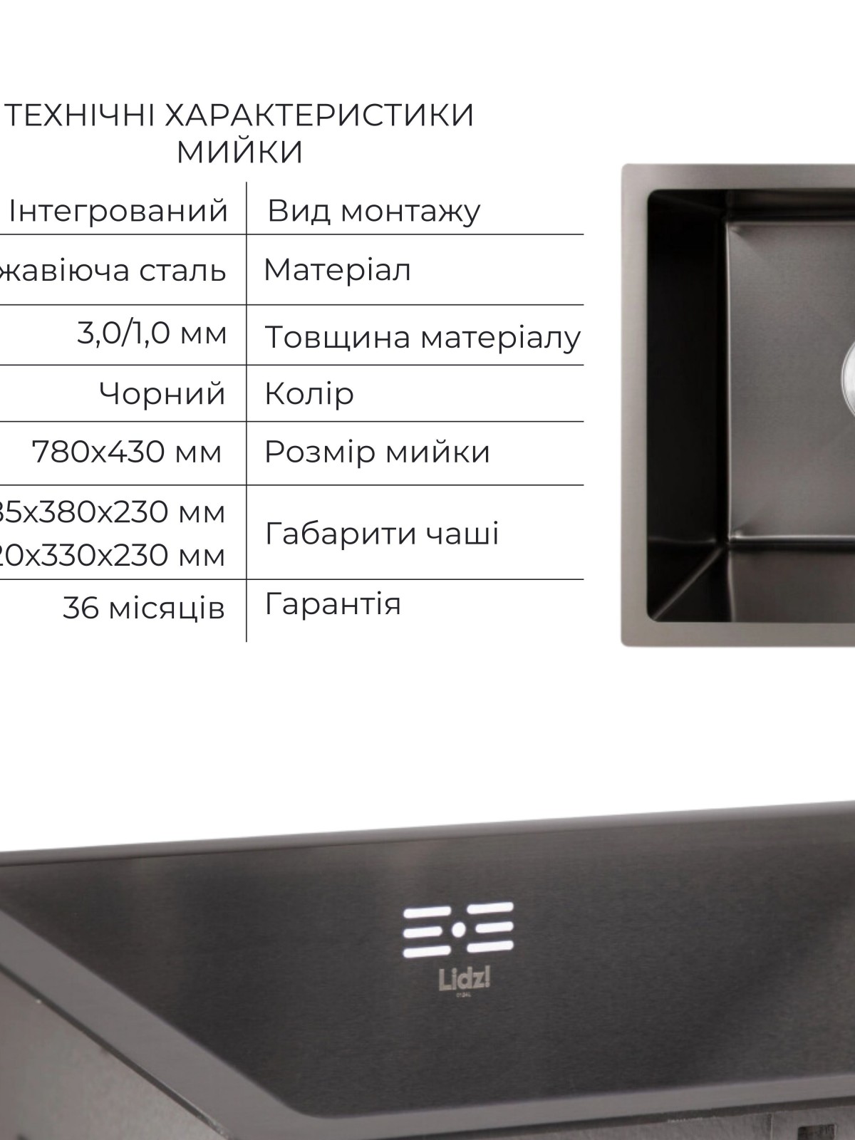Комплектація: Мийка (LDH7843BPVD45586), кошик (LIDZK01B)