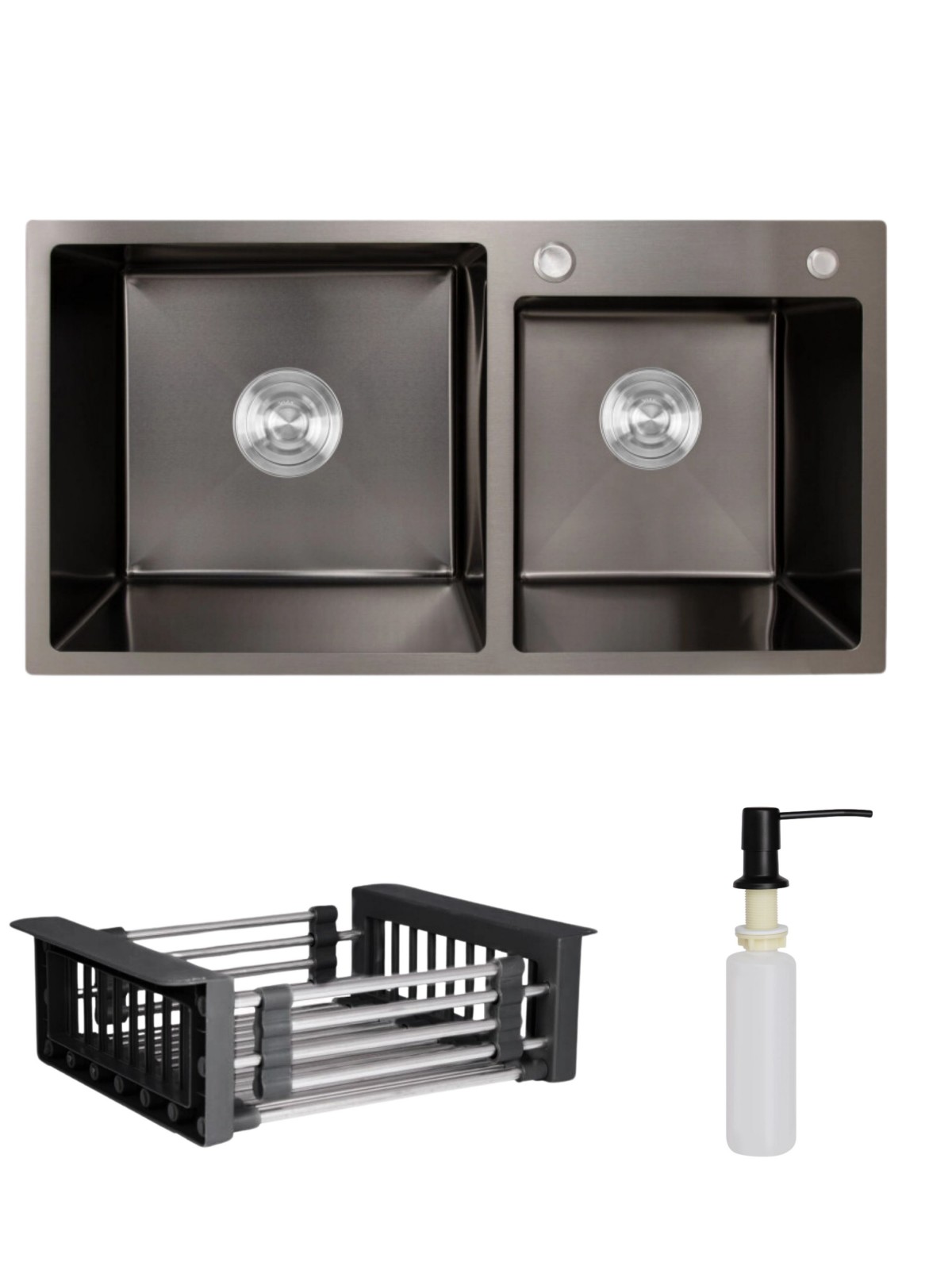 Комплект Lidz Handmade H7843 (BlackPVD) з двома чашами, чорним покриттям BlackPVD, дозатором і кошиком Lidz K01B - це практичне рішення для найвимогливіших користувачів.