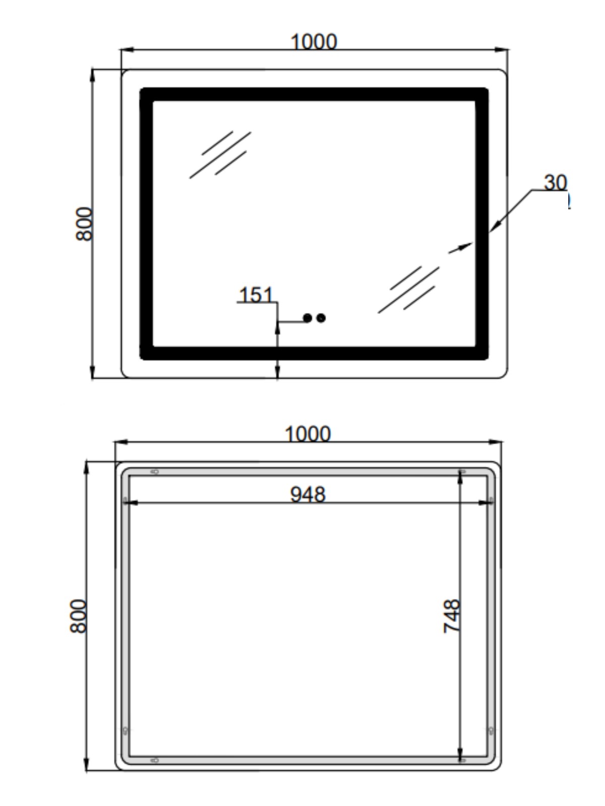Габаритні розміри виробу (ШхГхВ), мм: 1000х800х30