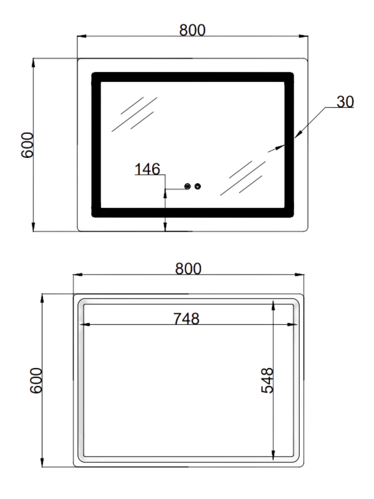 Габаритні розміри виробу (ШхГхВ), мм: 800х600х30