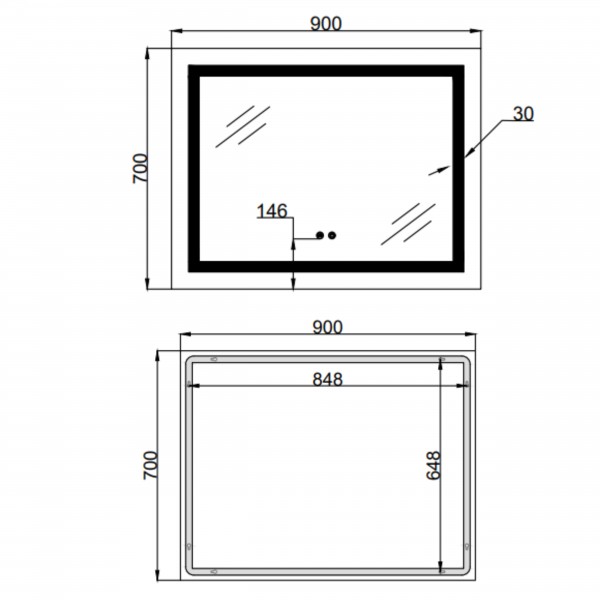 Габаритні розміри виробу (ШхГхВ), мм: 900х700х30