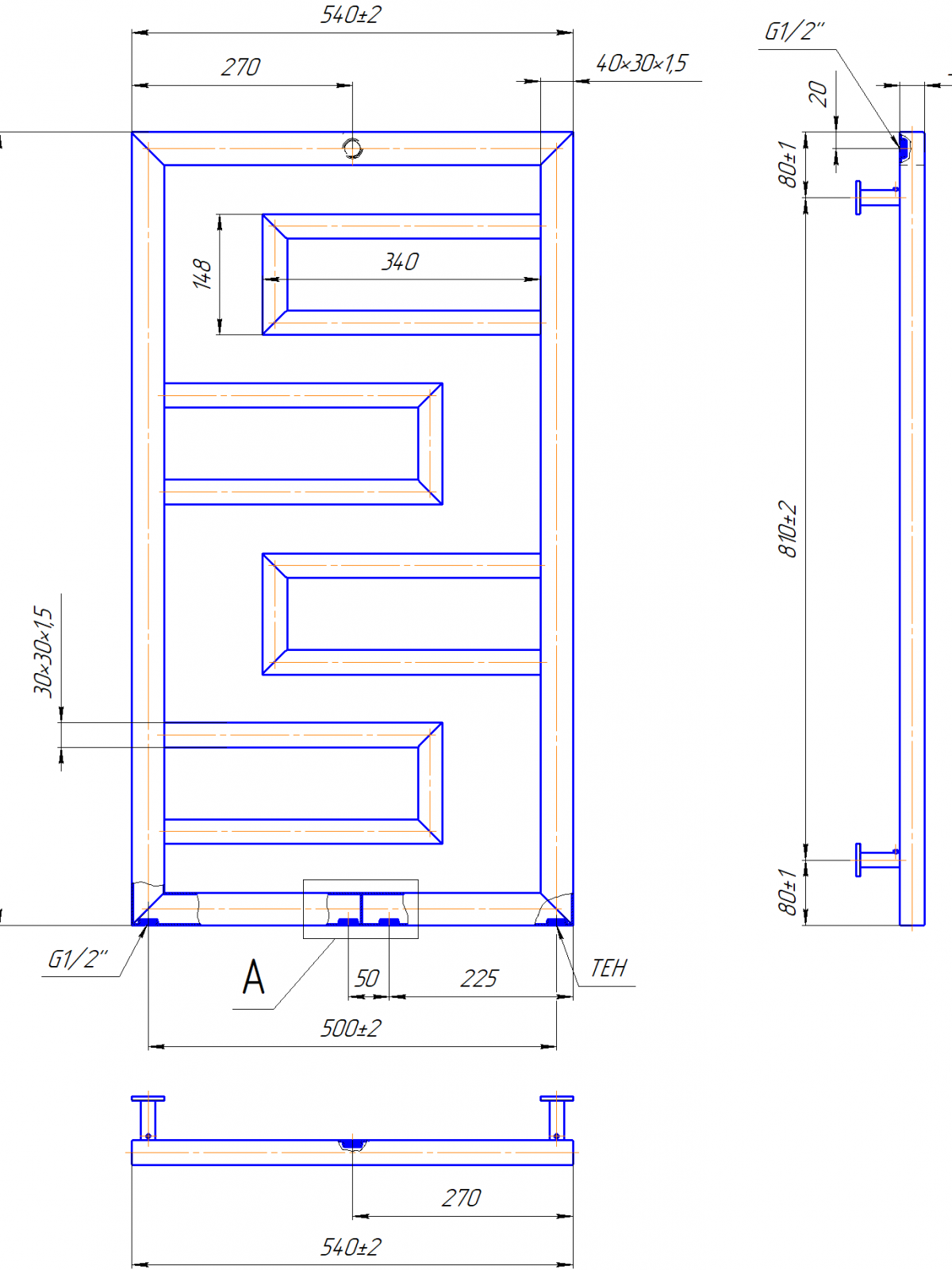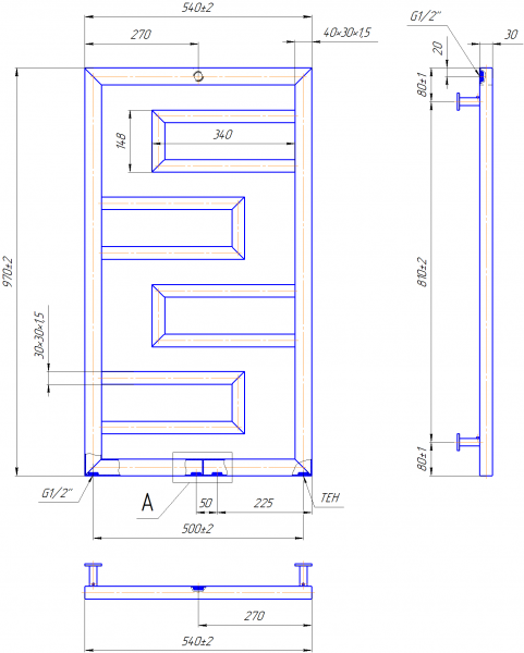 Рушникосушарка INOX Талія 970х540/500/50. Розміри: висота - 970 мм, ширина - 540 мм, глибина 80 мм, міжцентрова відстань для підключення - 500 мм, діаметр підключення G1/2''. Варіанти підключення: нижнє, діагональне та бічне. Кількість ребер - 4. Виготовлена з полірованої нержавіючої сталі без хромування. Для всесезонної роботи водяну модель можна переобладнати на комбіновану, встановивши ТЕН, рекомендована потужність 300 Вт. Сумісні аксесуари: поворотні полиці та навісні гачки для збільшення функціональності. Рекомендовано підключати рушникосушарку за допомогою кранів Маріо. Гарантія - 50 років в закритій системі опалення, 5 років у централізованій.