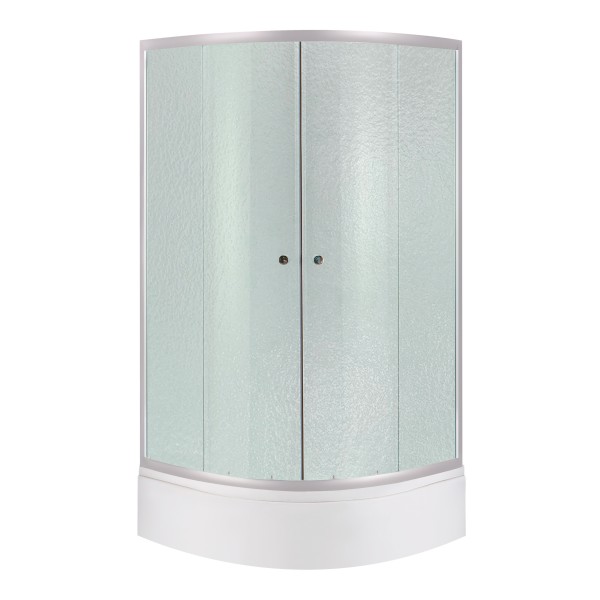 Комплектація: Профіль, подвійні ролики, ручки, комплект кріпильних деталей, глухе скло, скляні двері, піддон, сифон, ніжки, панель для піддону.