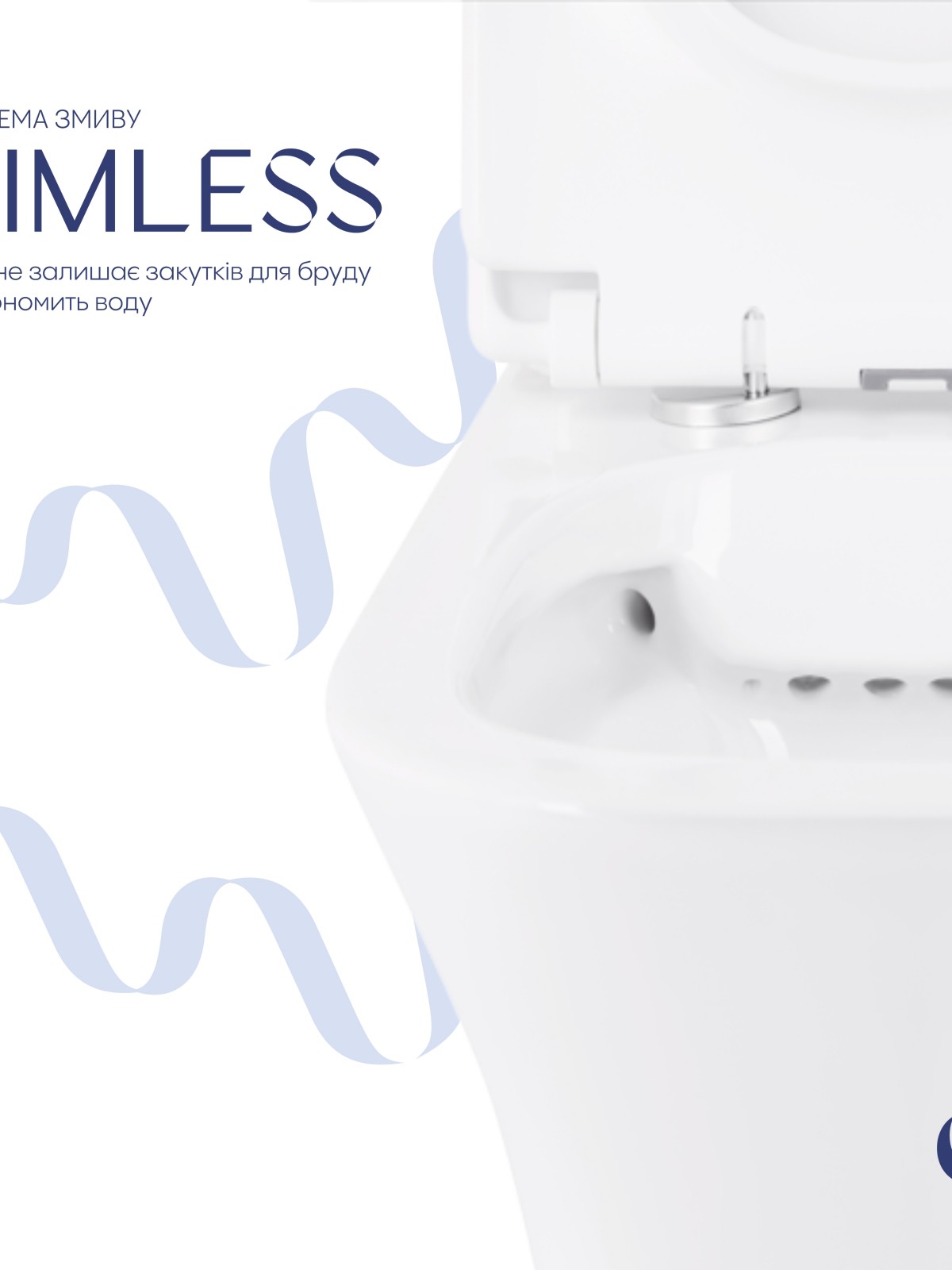 Зливний вихід: Отвори біля основи безободкової чаші з технологією змиву Rimless
