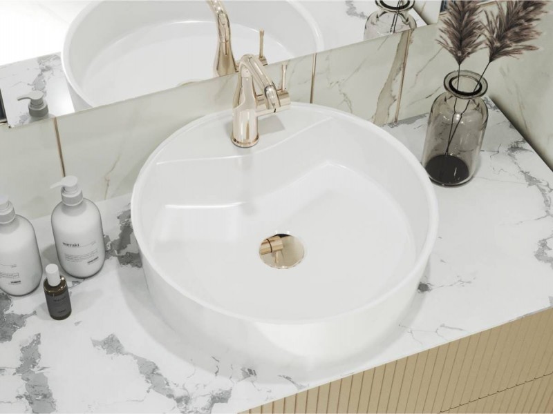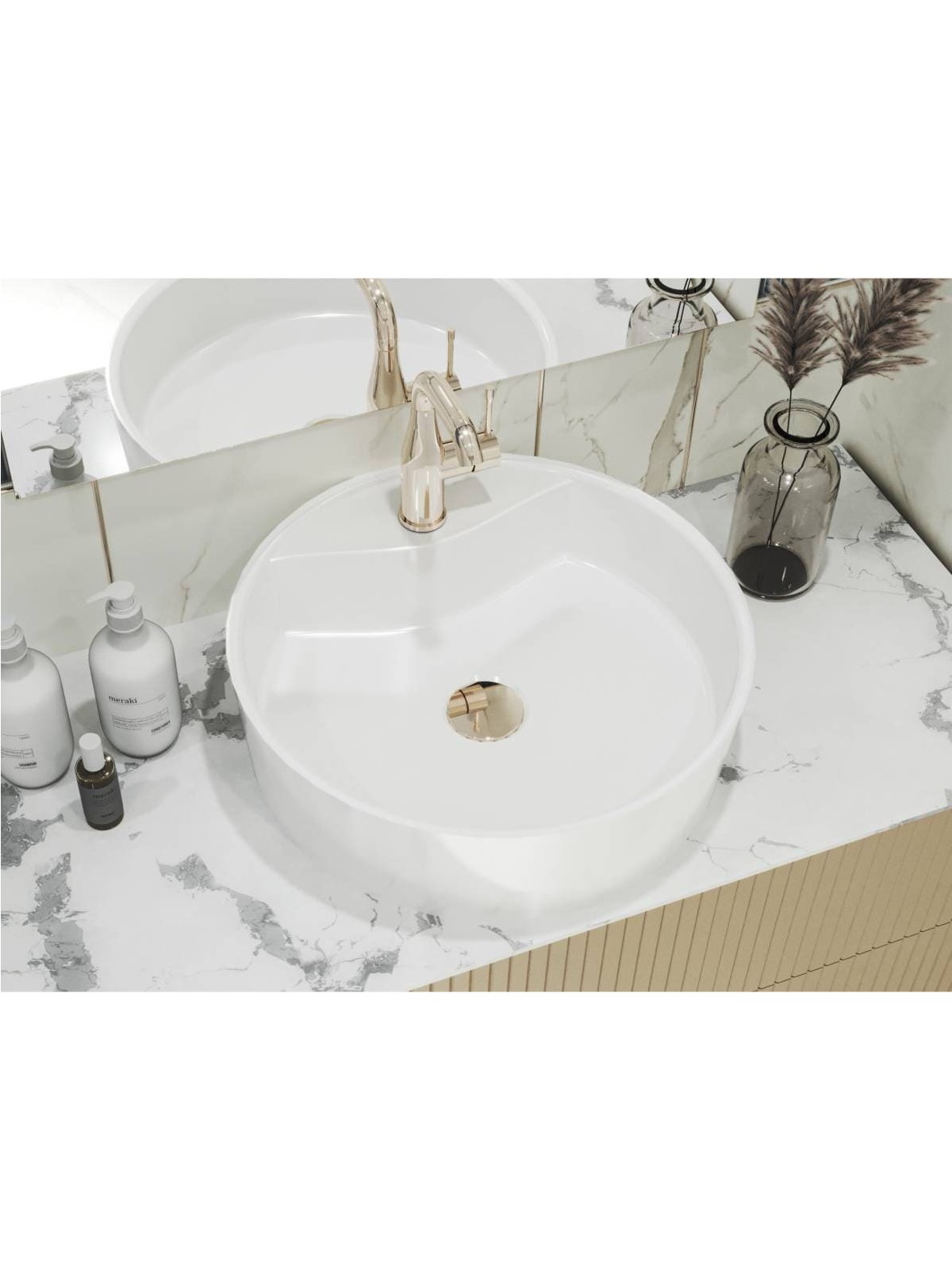 Круглий за формою чаші раковина має тип монтажу - накладний, врахуйте це перед замовленням меблів у ванну кімнату.
