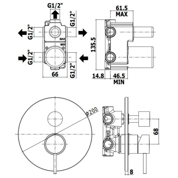 LIG019ST Light exclusive Змішувач для душу, steel looking (1 сорт)