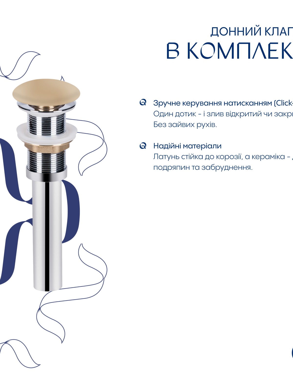Гарантія: 27 років — раковина; 2 роки — донний клапан