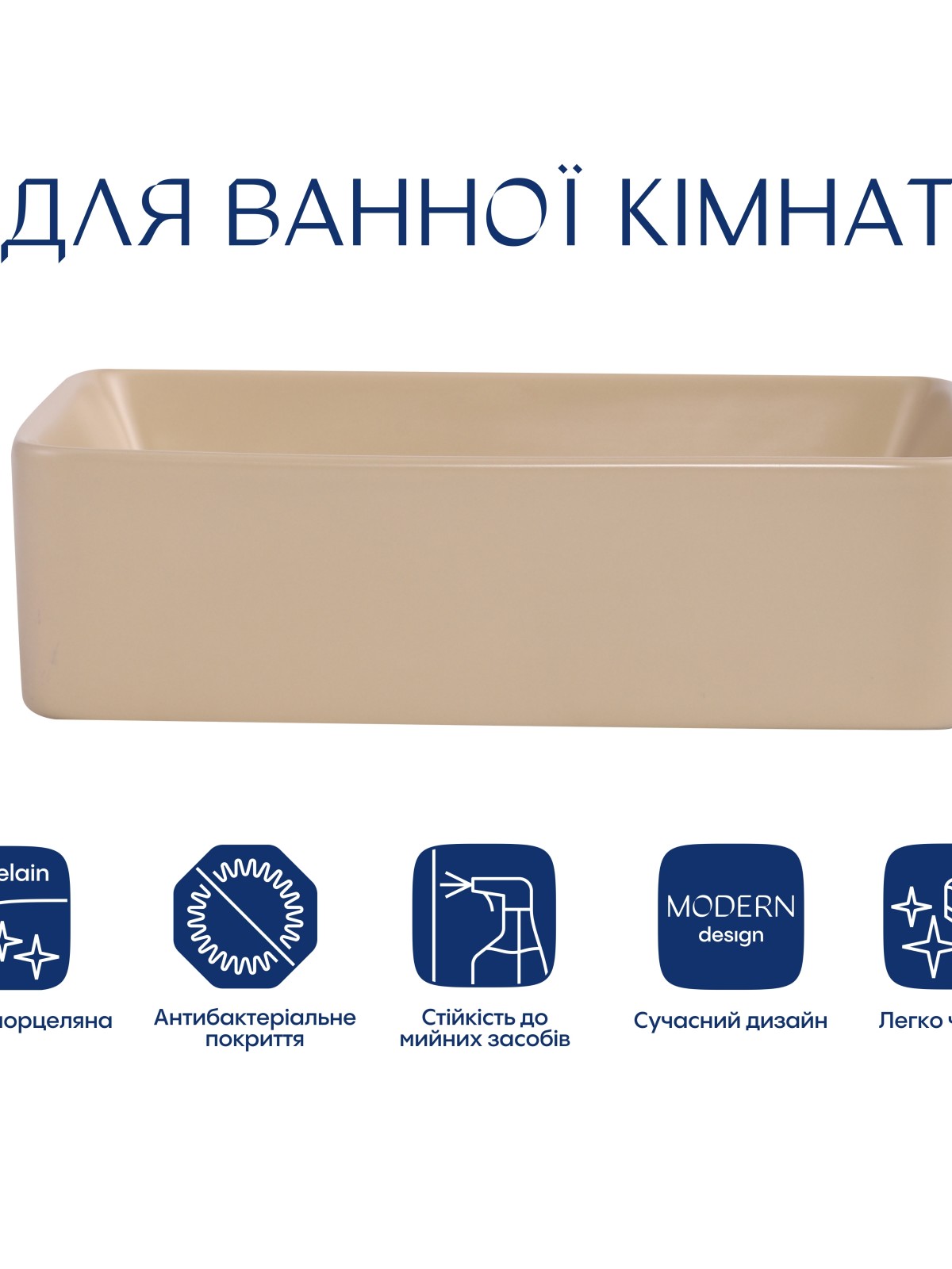 Накладна раковина Qtap Tern у бежевому кольорі гармонійно вписується в інтер’єр ванної кімнати, додаючи тепла й затишку. Прямокутна форма робить модель практичною та зручною в повсякденному користуванні, а якісні матеріали забезпечують довговічність і надійність. У комплект входить донний клапан.